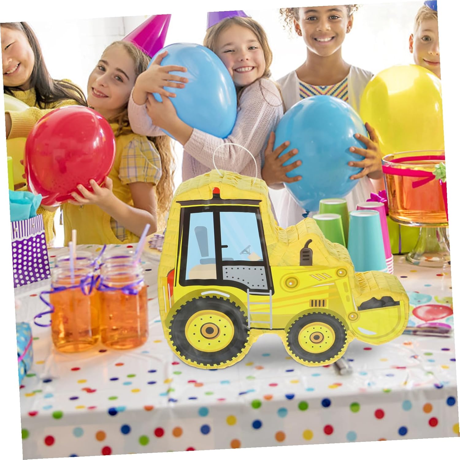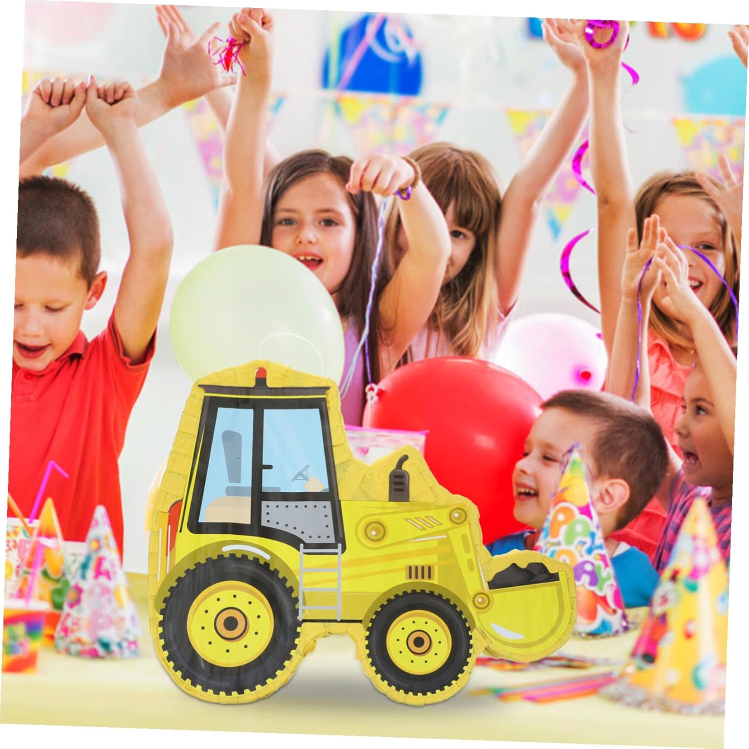 Piñata con veicolo da cantiere - Questa tradizionale piñata messicana è fatta di carta, leggera e facile da aprire. Piñata da costruzione Piñata per trattore - l'esclusivo design della piñata per escavatore con decorazione colorata in carta velina attira l'attenzione, piñata da costruzione Bella piñata per escavatore - il design creativo e colorato a forma di escavatore è adorabile e aggiunge bellezza e colore alla tua casa o alla decorazione di una festa con veicoli da costruzione Piñata per feste - prendi la piñata dalla confezione, riempila con caramelle e appendila dove vuoi, quindi colpisci la piñata con la mazza per creare una decorazione per la festa. Veicoli da costruzione: ideali per feste a tema messicane, feste, feste Cinco de Mayo, feste di compleanno e altro ancora, forniture per feste con escavatori