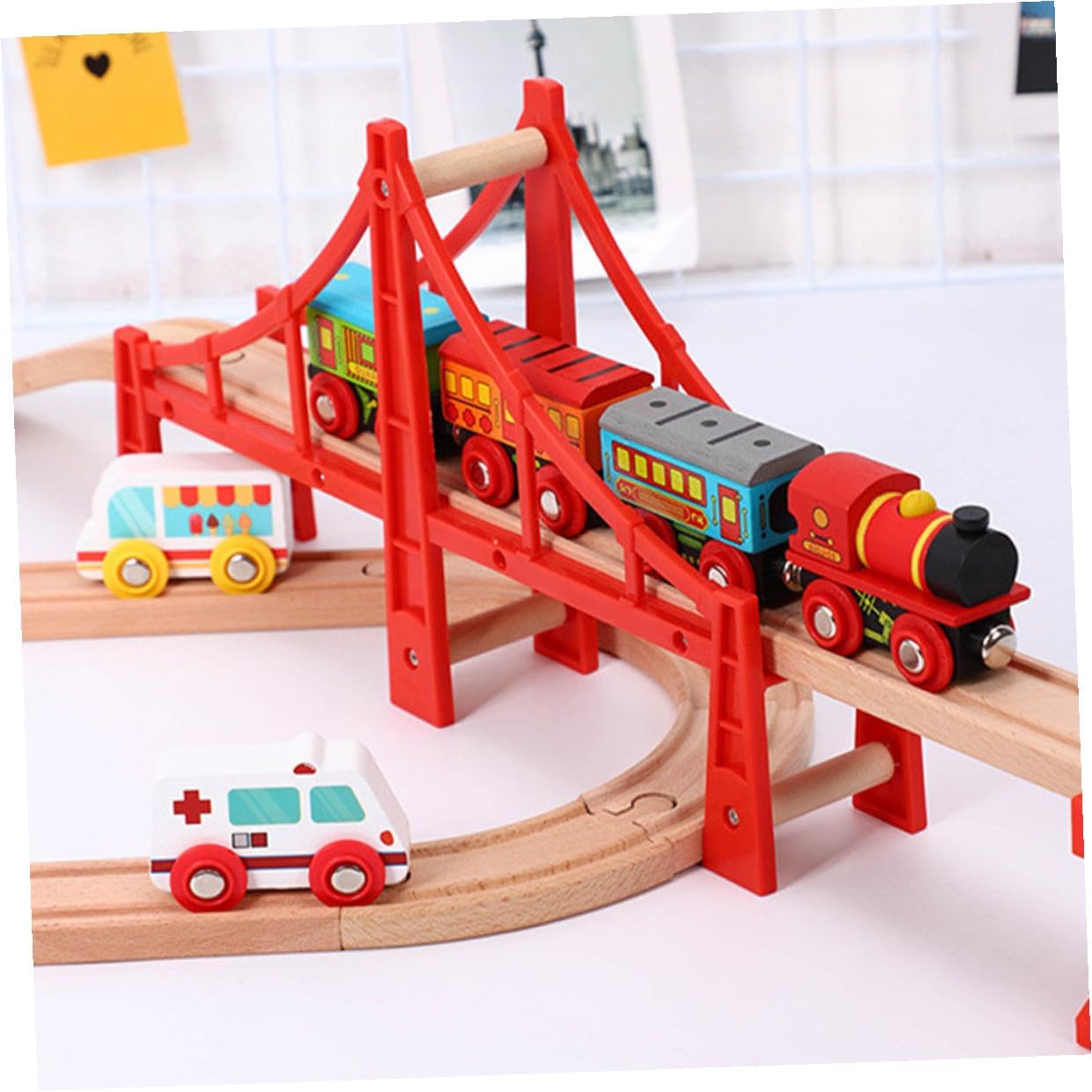 Treno a ponte: il nuovo look offre un restyling moderno di un vagone merci con più legno a vista e design aggiornati, giocattolo a ponte Giocattolo del ponte: costruire binari del treno aiuta a stimolare le capacità di pensiero logico dei , tracciare il ponte del treno Binario ferroviario rialzato: man mano che il tuo cresce, anche il suo gioco ferroviario può , poiché il ponte è compatibile con tutti gli altri giocattoli ferroviari, trenino con binari Completa il tuo set di treni preferito con questi ponti ferroviari e porta il treno al livello successivo È perfetto per natale o durante le festività natalizie per i creativi, progettato per dai 3 anni in su
