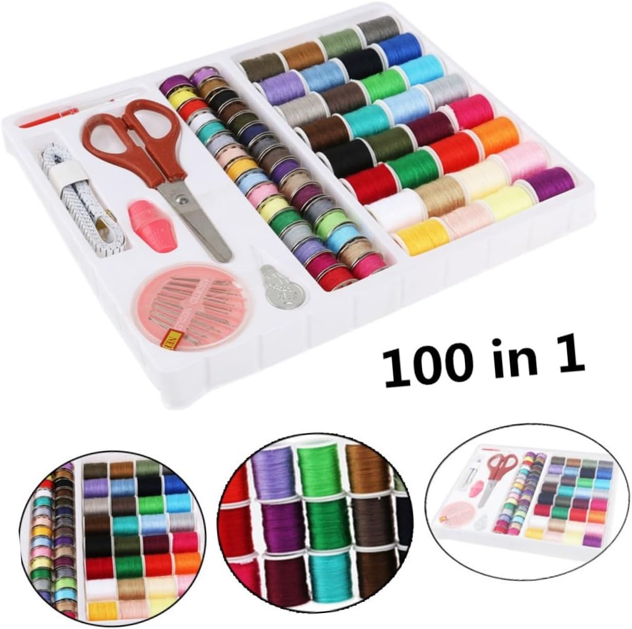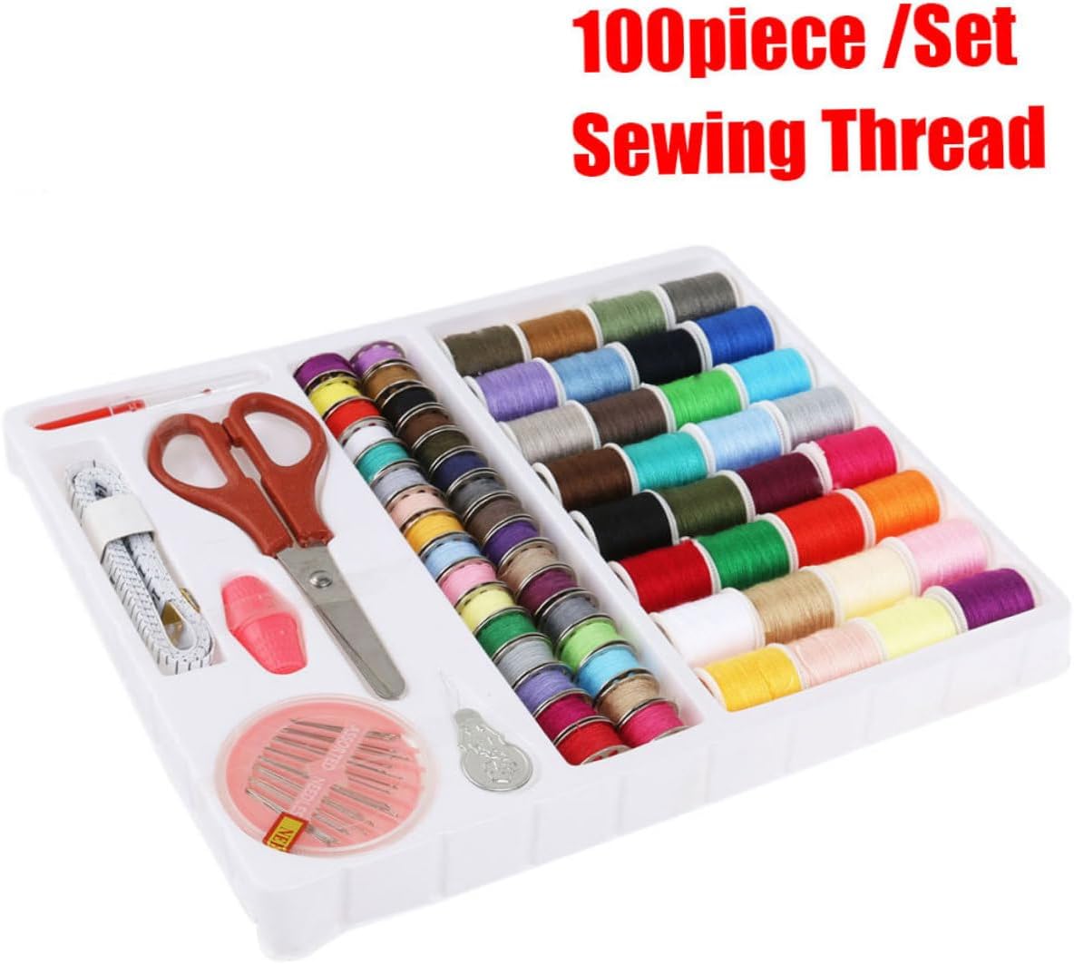 , materiale plastica, metallo e filo di cotone, utensile per macchina da cucire, fornitura per macchina da cucire Articoli essenziali per il cucito: il kit da cucito 100 in 1 include tutti i tipi di accessori necessari per i tuoi progetti di cucito e artigianato, kit per macchina da cucire per adulti Inclusi: 32 rocchetti di filo assortiti, 32 rocchetti di metallo abbinati, 30 aghi in una scatola, un metro a nastro, un paio di forbici, 2 ditali, un infila ago e uno scucitore, prodotti per cucire, kit da cucito per adulti Kit per progetti di cucito: ideale per l'uso domestico e in viaggio, o come per adolescenti e principianti che necessitano di alcuni articoli di base per cucire, kit per macchina da cucire