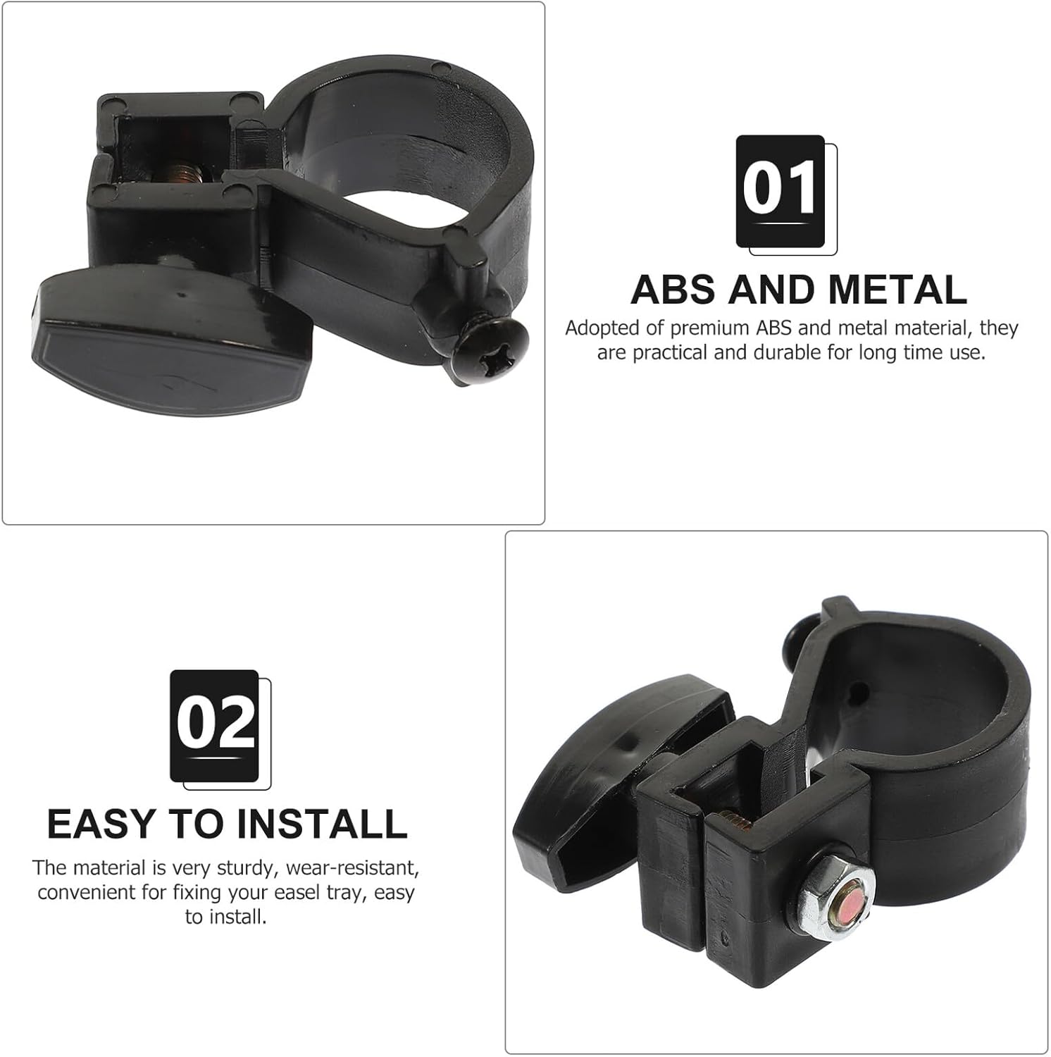 Fibbie per vassoio da cavalletto: il set di parti di fissaggio può fissare bene e saldamente il vassoio del cavalletto, che può anche essere staccato in qualsiasi momento, fornitura di cavalletti Parti del vassoio del cavalletto sostituibili: buona consistenza, dettagli perfetti, che possono offrirti una buona esperienza, parti del vassoio del cavalletto riutilizzabili Fibbie compatte per vassoi da cavalletto: l'eccellente lavorazione del nostro prodotto ti offrirà parti regolabili in base alle esigenze, robuste fibbie per vassoi da cavalletto Accessori compatti per cavalletto: il set di parti è realizzato con fibbie per vassoi per cavalletto professionali per maggiore stabilità e durata Fibbie per vassoi da cavalletto portatili: materiale in metallo e abs di alta qualità e lavorazione artigianale, robuste e durevoli a lungo, accessori per cavalletti riutilizzabili