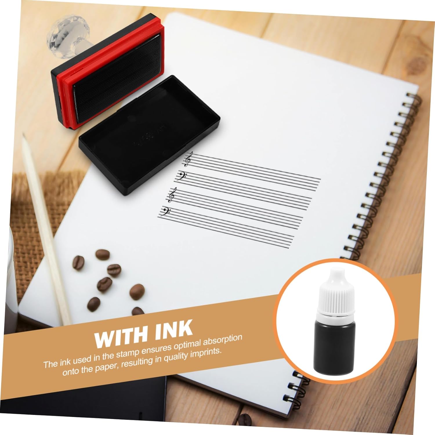 Strumento per timbri per il personale: l'inchiostro del timbro viene assorbito sul foglio, creando impronte di qualità, asciugandosi all'istante e mantenendo la nitidezza e la resistenza del colore, i timbri vengono forniti dall'insegnante Timbro per pentagramma: basta timbrare sui modelli forniti e riempire le note con una penna o una matita, timbro per pentagramma Timbro per insegnanti: adatto per musicisti professionisti che per studenti, questo timbro per spartiti musicali è uno strumento ideale per insegnare e apprendere la notazione musicale, timbro per pentagramma Timbro per pentagramma e tablatura: questo timbro rivoluziona il modo in cui gli insegnanti di musica i loro spartiti e quaderni, strumento per insegnanti Creazione di timbri: questo timbro è perfetto per l'insegnamento della musica ed è adatto per insegnanti che per studenti, strumento per timbri per musicisti