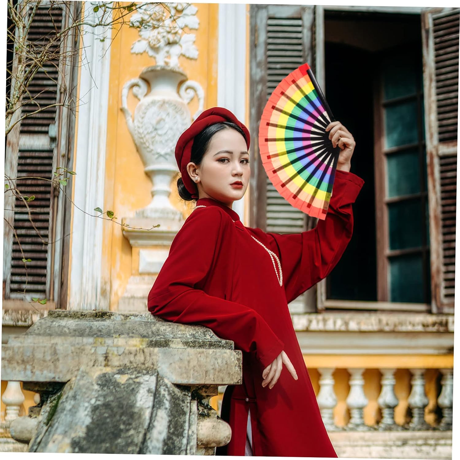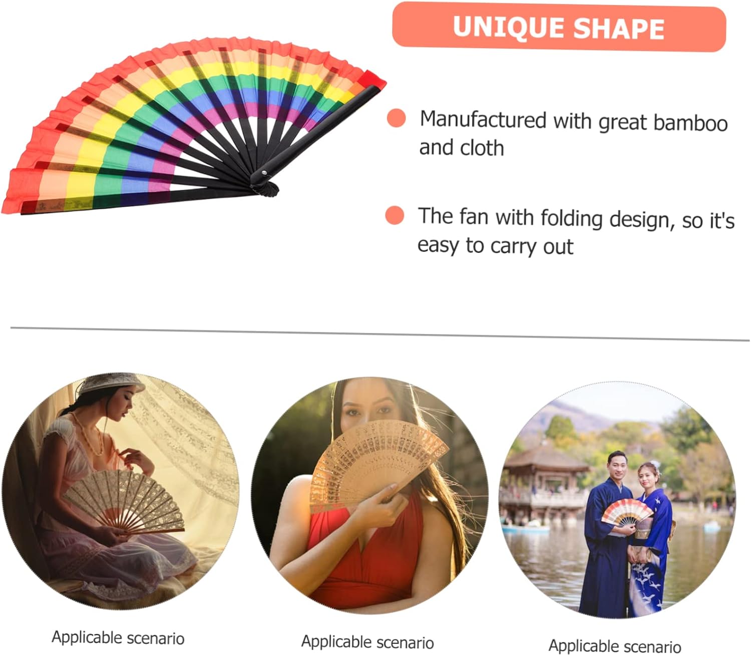 Ventilatori portatili palmari: ottima fattura, stampa chiara, colori vivaci e decorazione, ventilatore Ventaglio pieghevole: è principalmente con materiale sicuro e delicato, con un'eccellente consistenza, che, ventaglio pieghevole Ventagli pieghevoli d'epoca, realizzati con e stoffa, adatti per l'uso come ventaglio portatile Ventaglio decorativo: ha usi, adatto per ballare, come oggetto scena per la fotografia, per i viaggi estivi, ecc. ventaglio pieghevole Ventaglio fotografico: piccolo e creativo, pratico, facile da trasportare e da riporre, è un gadget molto pratico, ventaglio