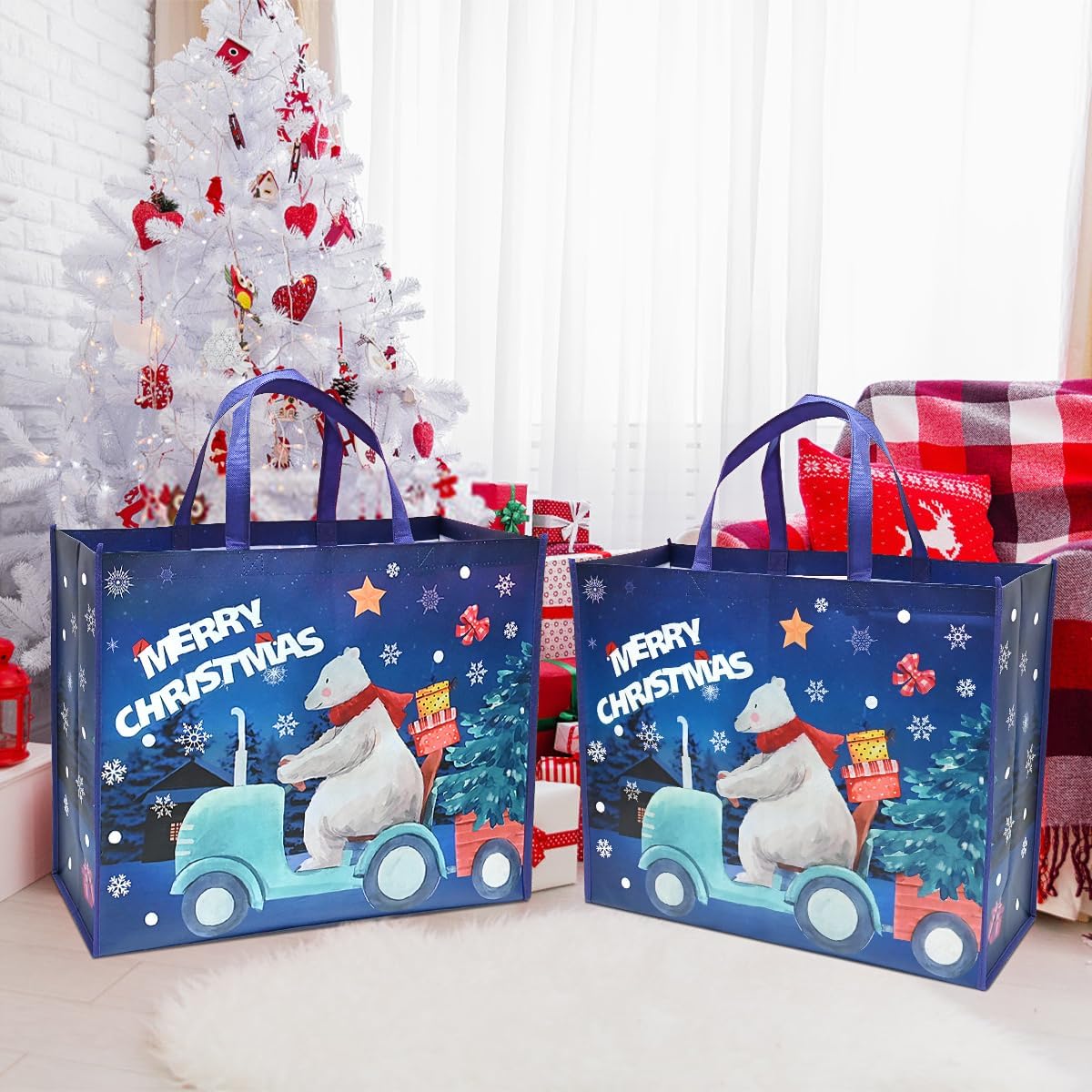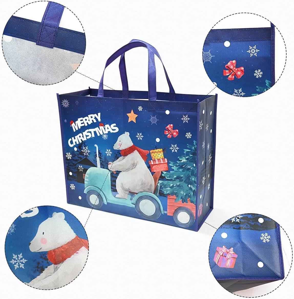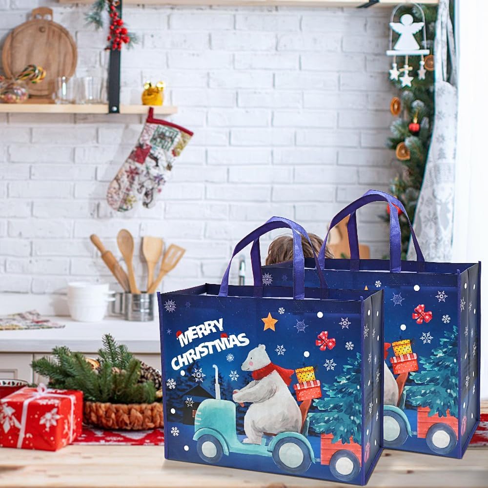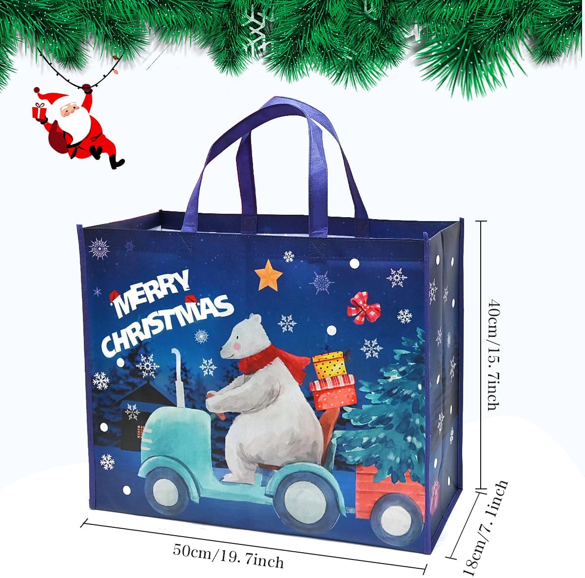 Confezione: include 2 sacchetti regalo di Natale extra grandi, il design festivo e di grandi dimensioni sarà molto utile con l'avvicinarsi del Natale. ALTA QUALITÀ - Le borse natalizie sono realizzate in tessuto non tessuto di alta qualità, con superficie liscia e maniglia resistente. Sono molto robusti, impermeabili e riutilizzabili. Adatto per regali di diverse dimensioni. Extra large: i sacchetti regalo di Natale misurano 50 x 40 x 18 cm. I grandi sacchetti regalo di Natale possono essere utilizzati per la consegna di regali o per lo shopping natalizio. Comodo da usare: grandi sacchetti regalo di Natale con manico, sono leggeri e resistenti, comodi da trasportare, adatti a diverse occasioni di Natale. Alta qualità e soddisfazione garantite al 100%. I sacchetti regalo di Natale hanno un design festoso blu navy e sono ideali per inviare e distribuire regali di Natale. Se non sei soddisfatto, saremo lieti di rimborsarti l'intero prezzo di acquisto.
