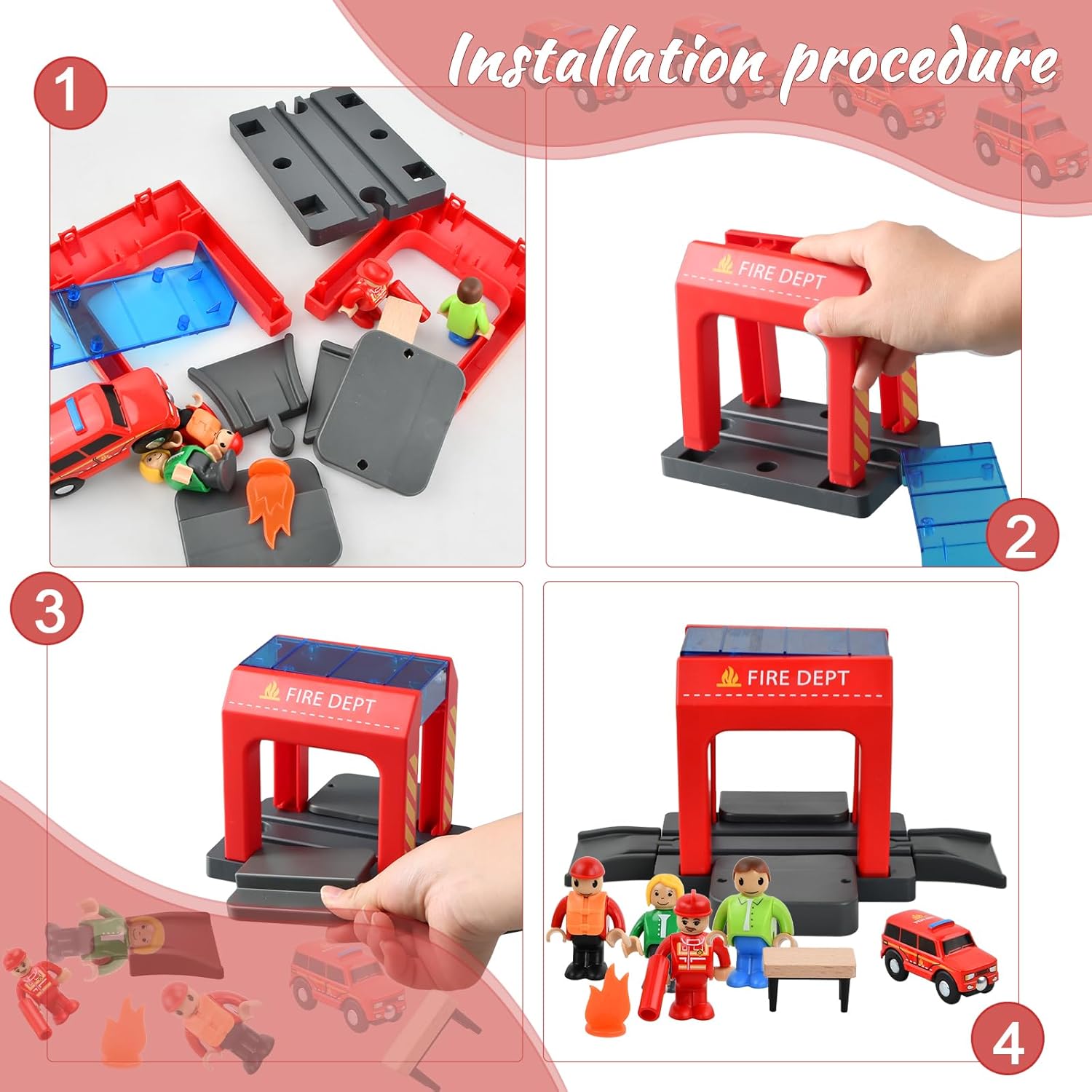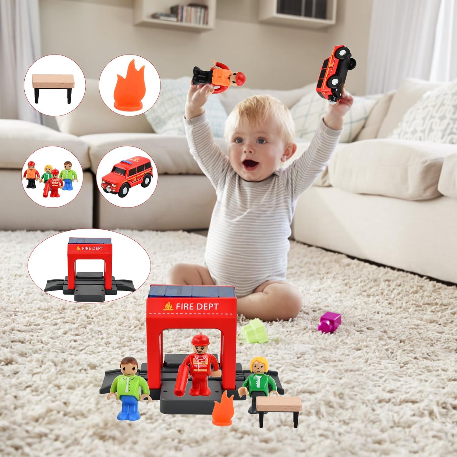 Set stazione dei pompieri: tuffati nell'azione con il nostro set di treni della stazione dei pompieri! Dotato di un edificio della stazione dei pompieri, un camion dei pompieri, un modello di pompiere, due figure di pompieri e due civili, questo set è progettato per far sentire il tuo bambino un vero eroe. Compatibile con vari binari in legno o treni elettrici, aggiungendo un nuovo livello emozionante al loro tempo di gioco. Materiali di prima qualità: il nostro set della stazione dei pompieri è realizzato con plastica di prima qualità e vernice atossica, con colori realistici, durevoli e sicuri e anticaduta. È un giocattolo di ruolo per bambini di prima qualità. Lascia che i bambini coltivino hobby nell'intrattenimento. Facile da montare: l'intero set della stazione dei pompieri ha un totale di 16 parti. Ogni componente può adattarsi ed è facile da montare. I bambini possono facilmente costruire scene urbane, migliorando al contempo la loro abilità pratica e coltivando la loro abilità pratica. Molteplici modi di giocare: il nostro set di treni della stazione dei pompieri è il bel set di partenza che offre infinite opportunità di gioco di ruolo. Dai vigili del fuoco di guardia, ai camion dei pompieri che inviano le loro truppe, alle esercitazioni antincendio: il tuo bambino può regolare gli accessori e creare le sue scene di salvataggio vivaci. Regalo ideale: questo set di giocattoli educativi, adatto a bambini dai 3 anni in su, è un regalo meraviglioso. Ideale per Natale, attività in famiglia, asili e interazione genitori-figli, assicura divertimento e apprendimento in qualsiasi momento e in qualsiasi luogo, migliorando al contempo la relazione genitori-figli.