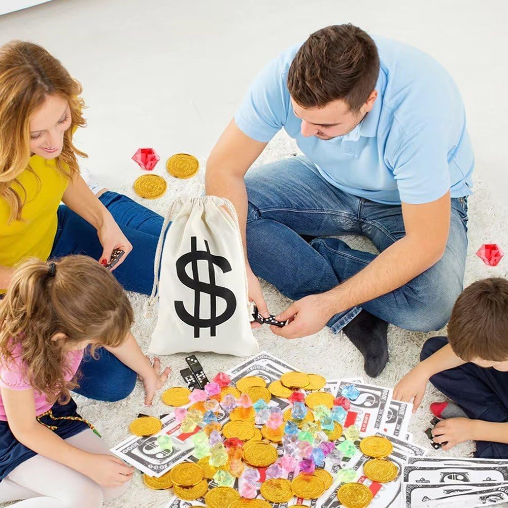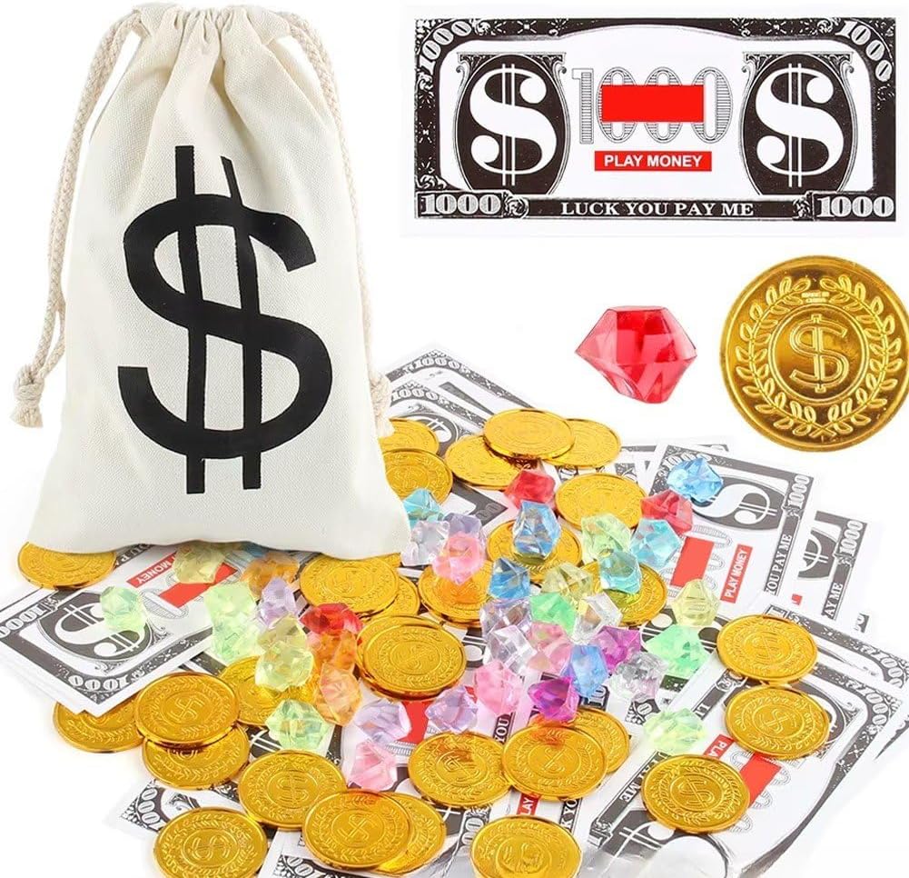 Squisita fattura: le monete d'oro e le gemme brillano, i colori vivaci brilleranno alla luce del sole, aggiungendo lustro alla tua vita. Bella combinazione: queste monete e gemme di plastica sono molto adatte per feste a tema pirati, feste di Halloween, feste di compleanno, carnevali, oggetti di scena, decorazioni per feste e molto altro ancora. Motivi interessanti: ogni moneta d'oro dei pirati ha un'immagine in rilievo, molte persone adoreranno giocare con queste monete dei pirati nei giochi dei pirati. Ampia gamma di occasioni: questi set di gioielli pirata possono essere utilizzati per abbellire il bancone 'acquario, come giocattoli palcoscenico, nonché come idee per costumi pirata, sfondi di film, ripieni di sacchetti di caramelle, che sono bei regali per feste, decorazioni e premi. Materiale di qualità: colorata pietra preziosa dei pirati e le monete d'oro sono realizzate in plastica affidabile e sicura, robuste e affidabili, adatte per decorazioni per feste.
