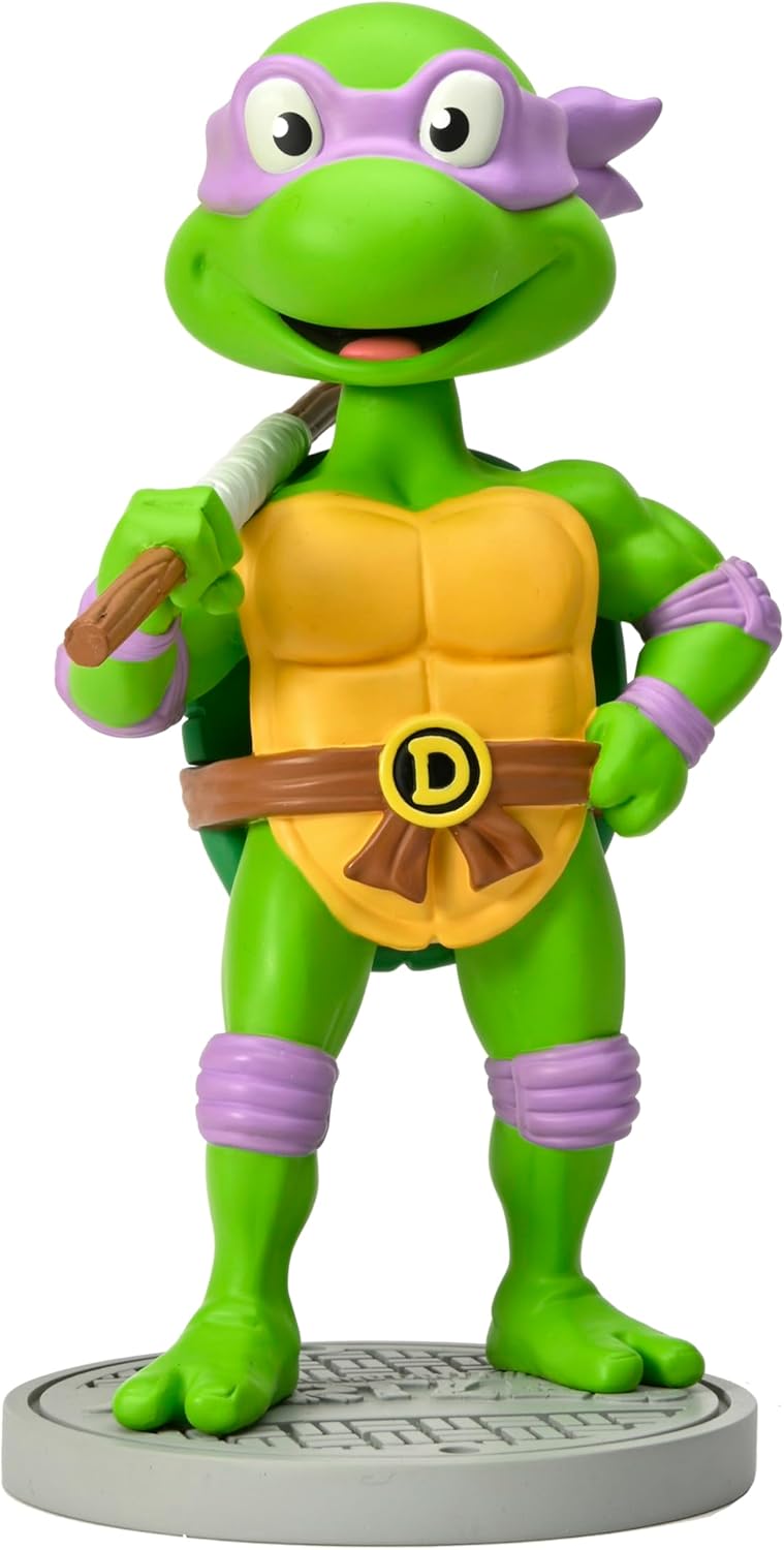 Neca presenta all'interno della sua linea di prodotti questo head-knocker di Donatello, l'inventore e il genio della tecnologia di una delle band più conosciute del mondo animato: Le Tartarughe Ninja. Questa figura di circa 16,5 centimetri sminuisce la testa con il movimento e posa con il suo bastone Bo. È realizzato in resina e dipinto a mano con cura per tutti i dettagli.