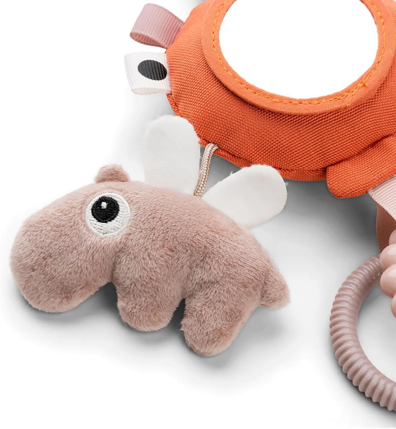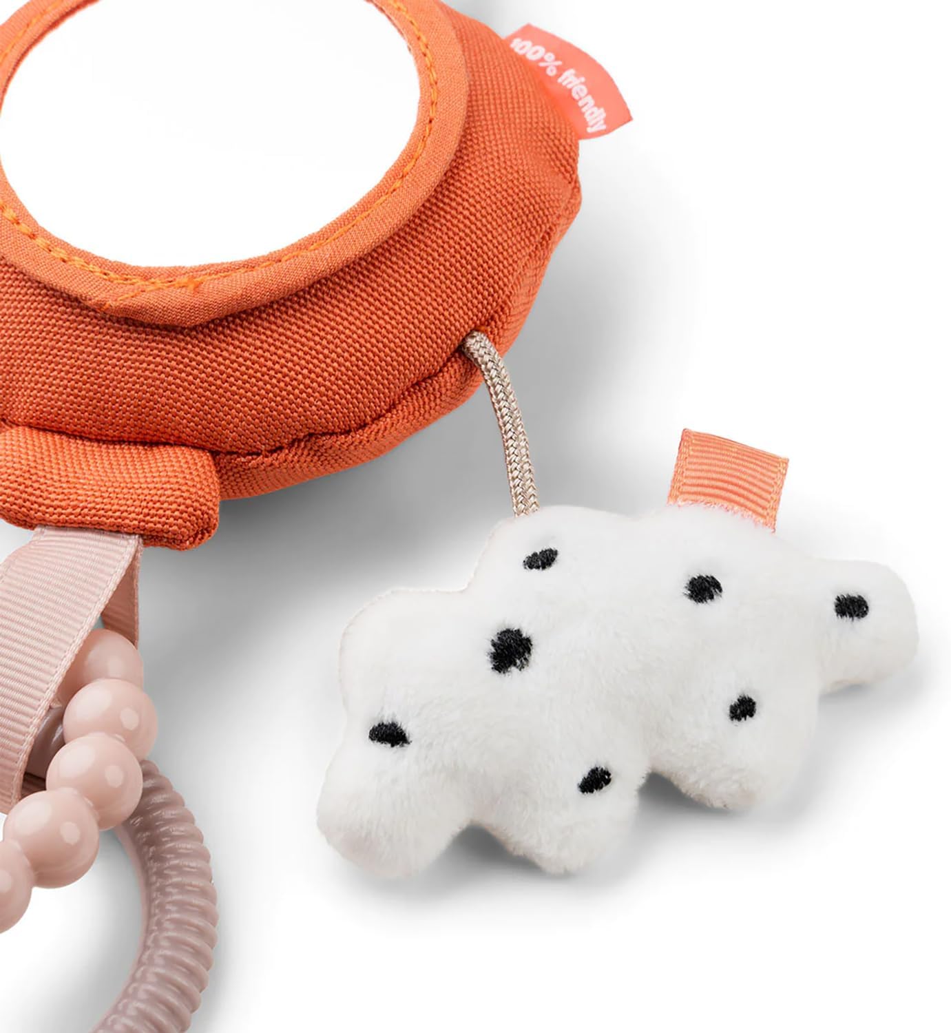 Activity - Specchio Happy Clouds rosa Con un sonaglio, un peluche Ozzo, una nuvola morbida, due anelli ed etichette divertenti Materiale: 100% poliestere Materiale imbottitura: 100% fibre di poliestere (riciclate) Dimensioni: 26 x 17 x 3 cm Istruzioni di lavaggio: pulire con un panno umido Età consigliata: dalla nascita