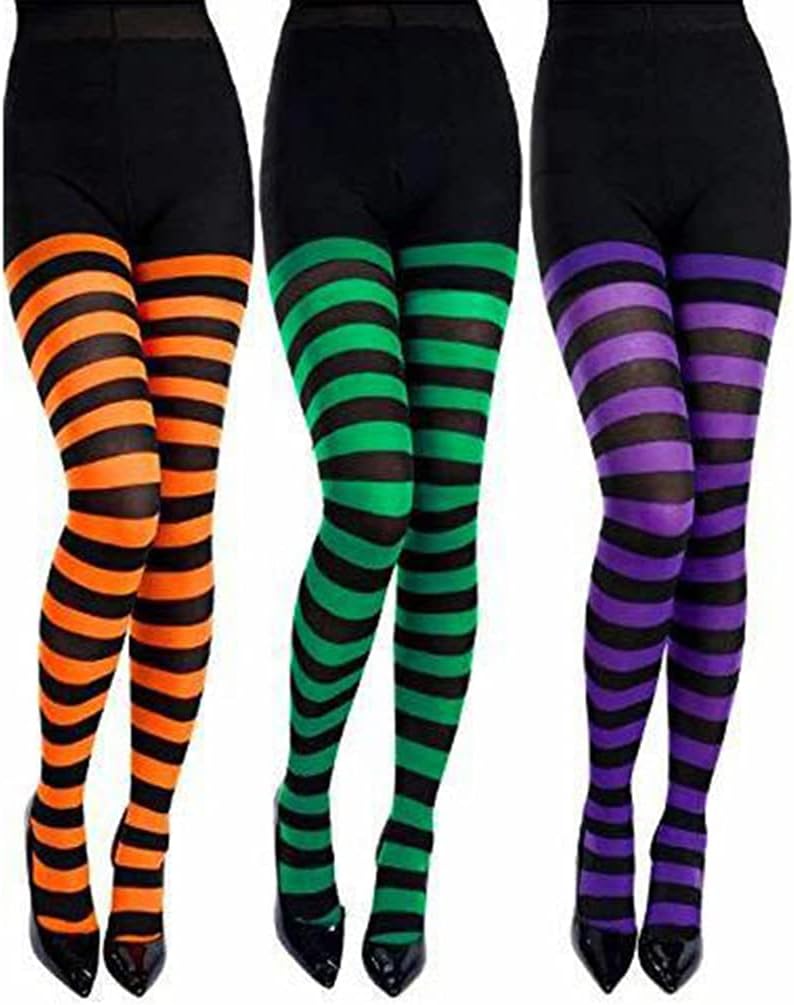 Ottimo capo da indossare sotto gonne, vestiti, pantaloncini e costumi. Adatto per vacanze, feste di Natale, Halloween, cosplay e così via. I collant divertenti e carini sono disponibili in una varietà di motivi a righe orizzontali e sono un ottimo modo per aggiungere un tocco di stile a qualsiasi outfit. Perfetto accessorio di Halloween/Natale da indossare come parte del design generale del costume o come capo a strati per il calore. Poliestere di alta qualità, traspirante e leggero, morbido e comodo da indossare, non facile da sfilare o rompere. Completa la tua strega, bambola, pagliaccio, elfo, ragazza del saloon, burlesque, pin-up e altre idee per i costumi. Lavora con una varietà di costumi.