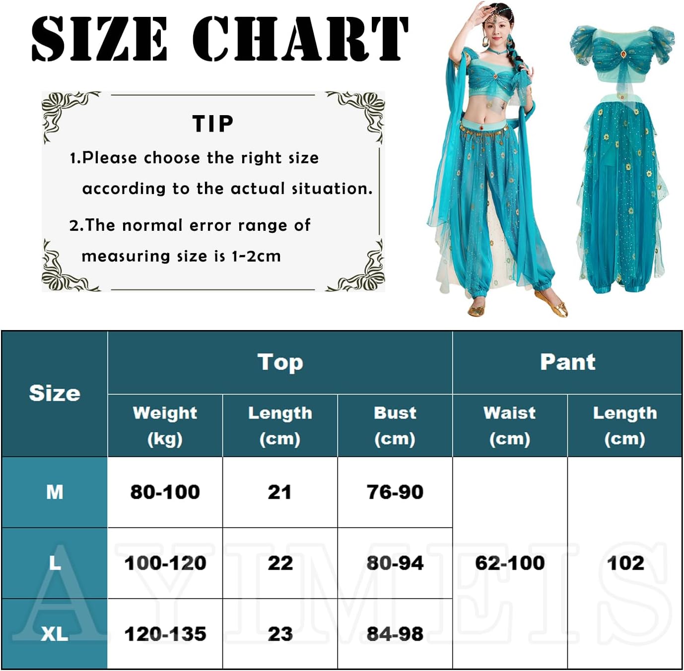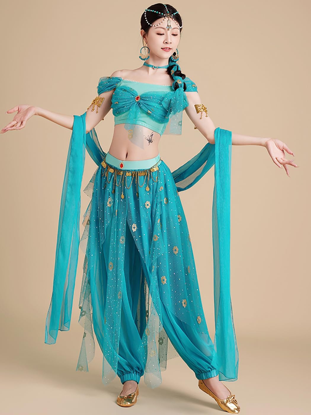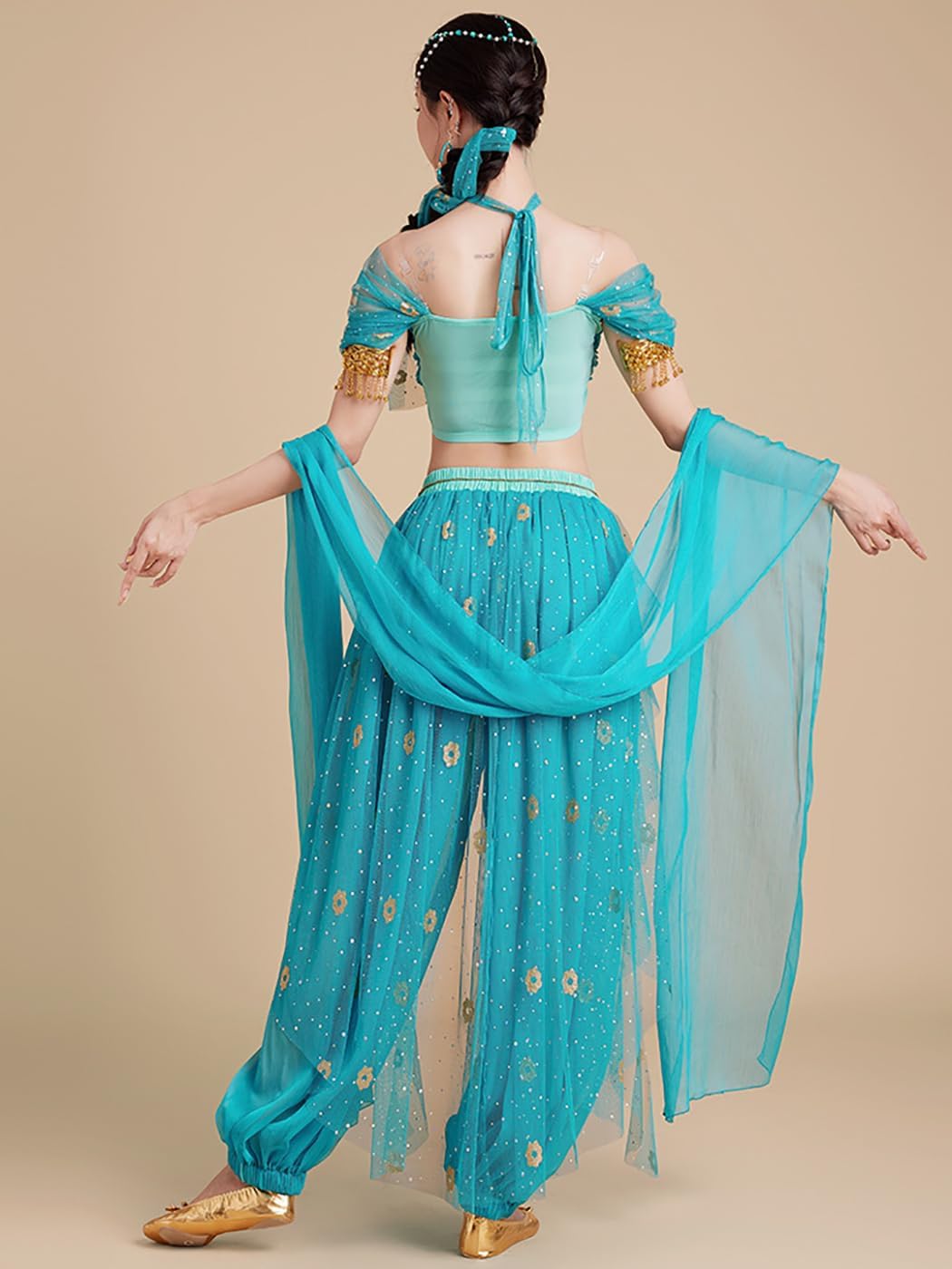 【Il pacchetto include:】- Top *1, Pantaloni *1, Accessori per capelli *1, Orecchini *2, Treccia *1, Cerchietto *1, Poncho *1 (come mostra l'immagine). 【Materiale principale】- Poliestere. Realizzato in materiale di alta qualità, morbido, comodo da indossare e abbastanza resistente. 【Caratteristiche dell'abbigliamento】- Costume Cosplay Principessa Jasmine con costumi esotici. Disegni ispirati alle immagini dei personaggi animati con splendidi accessori per un facile gioco di ruolo. Indossatelo e vi distinguerete tra la folla. 【Ampia applicazione】- Perfetto per feste a tema, Festival, Natale, Halloween, Carnevali, Danza latina, Danza del ventre, Performance sul palco, Fotografia, Comic Con, Cosplay, ecc. 【Riferimento taglia】- Per assicurarti di ottenere una taglia adatta a te, fare riferimento alla nostra tabella delle taglie prima dell'acquisto (ultima foto).