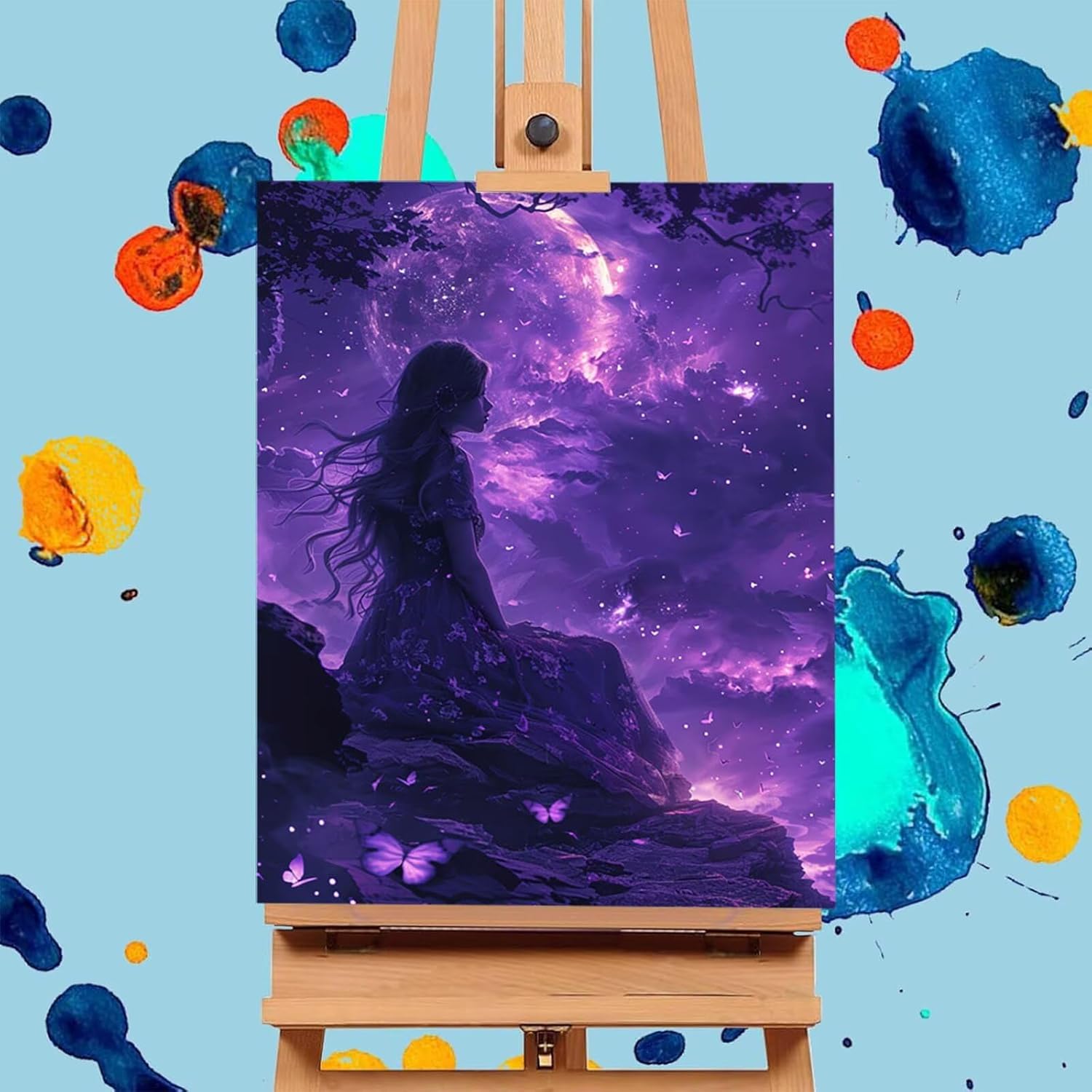 Donna Dipingere con i Numeri Adulti, Farfalla Dipingere con i Numeri, Fai da Te Paint by Numbers Kit Pittura Adulti con Pennelli e Colori Acrilici, per Decorazione Della Casa, Regalo 100x130 cm D-1009