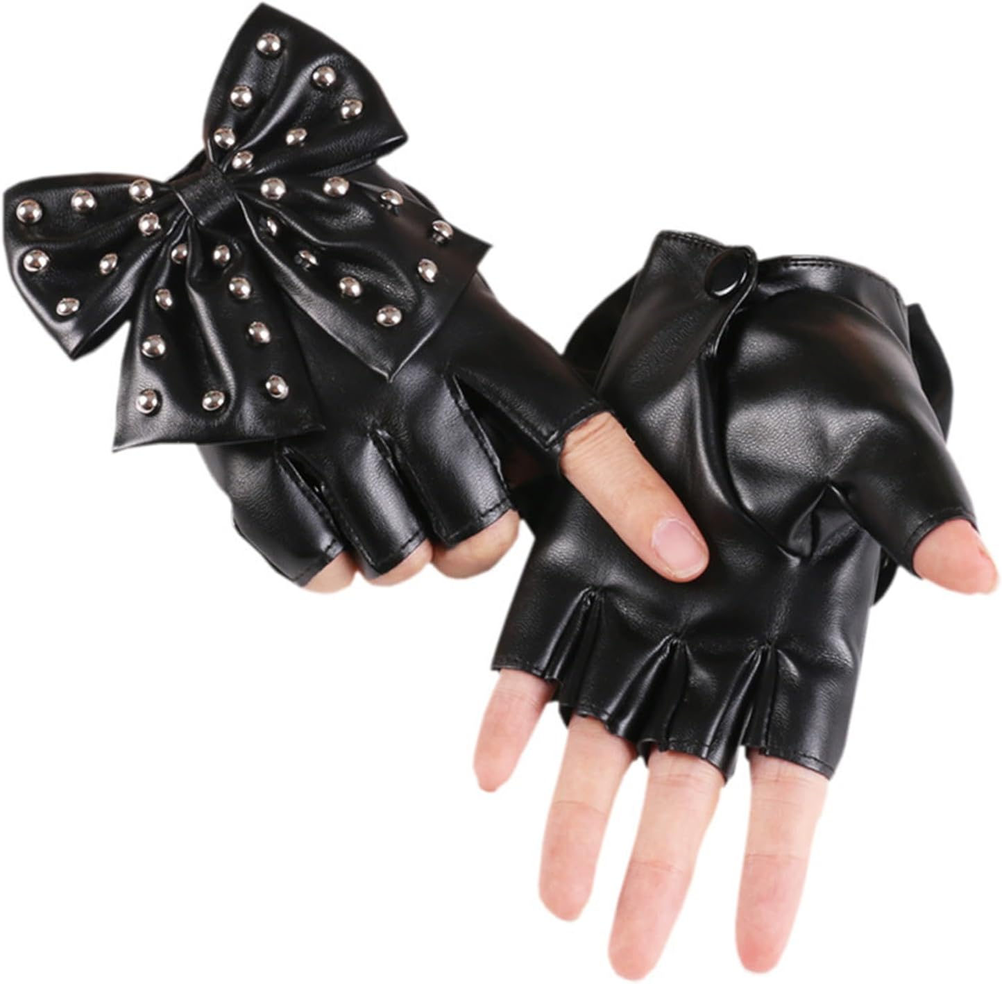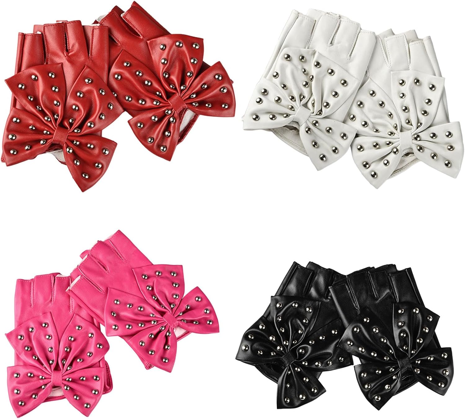 Migliora i tuoi stili con i nostri guanti da donna con rivetti con fiocco, utilizza pelle PU selezionata e decorati con rivetti per un look alla moda ed elegante. Questi guanti a mezze dita presentano decorazioni uniche con fiocco, che offrono flessibilità e un tocco di fascino, abbinando qualsiasi outfit. Design per donne alla moda, questi guanti sono ideali per coloro che abbracciano stili punk o dolci. Ideali per feste, festival musicali e fotografia di strada, questi guanti aggiungono un arredamento straordinario ai tuoi abiti. Fai una dichiarazione sulla pista da ballo o sul palco con questi guanti da performance, combinando funzionalità in accessori eleganti.