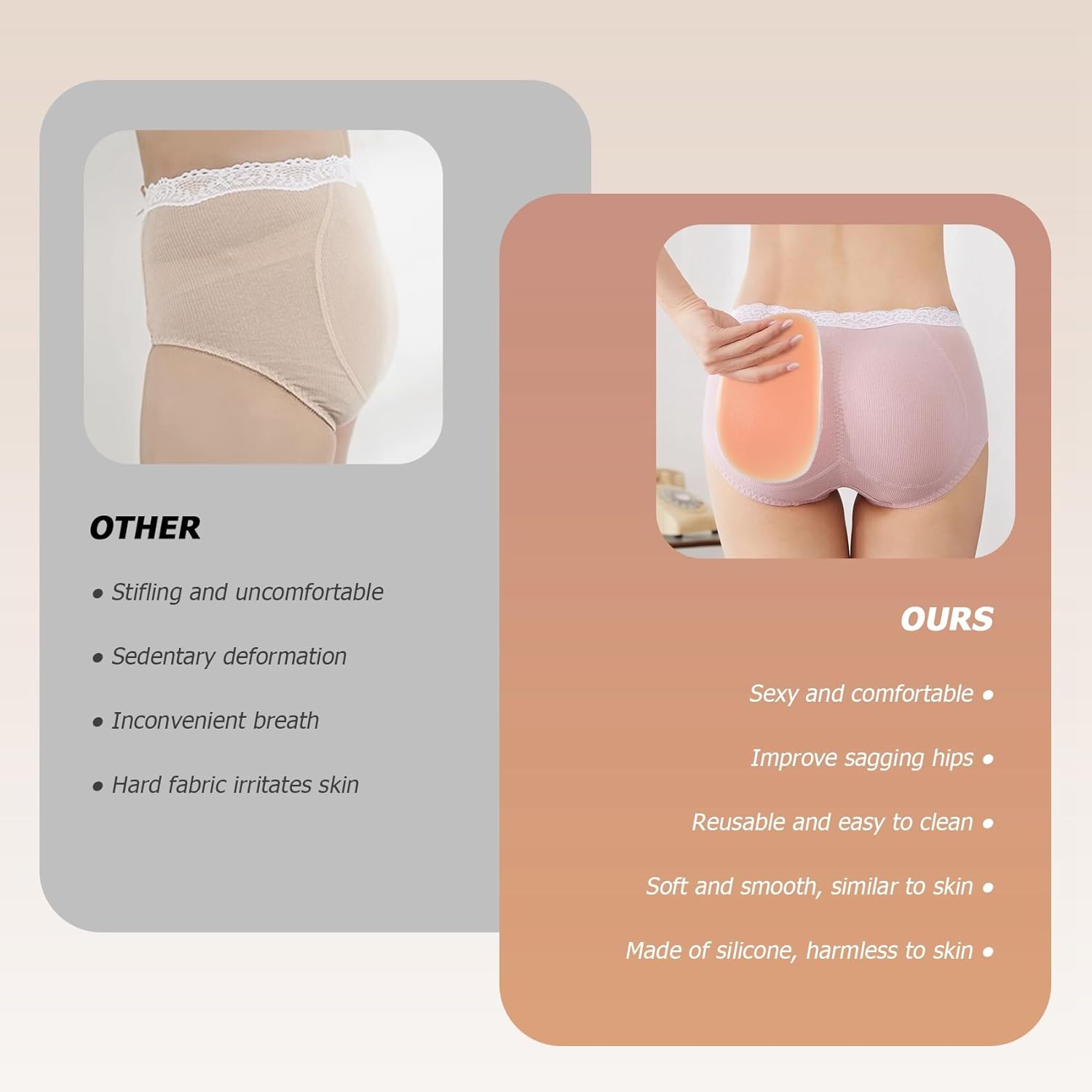 Harewtwy 100% di zecca Tipo di taglia: normale Stile: come descritto Caratteristica: invisibile, facile da pulire, riutilizzabile Realizzato in gel di silicone, nessun danno alla pelle Tocco morbido e liscio, simile alla pelle Migliora i glutei piatti, migliora i glutei cadenti Forme femminili, sexy e confortevoli Rende i tuoi fianchi più affascinanti e sexy È alla moda, , è un accessorio molto utile per creare curve perfette, anche come regalo. Contenuto della confezione: 1 paio di cuscinetti per l'anca in silicone Solo il contenuto della confezione sopra, altri prodotti non sono inclusi. Nota: riprese luminose e display diversi possono far sì che il colore 'articolo nell'immagine leggermente diverso da quello reale. L'errore di misurazione consentito è di +/- 1-3 cm.