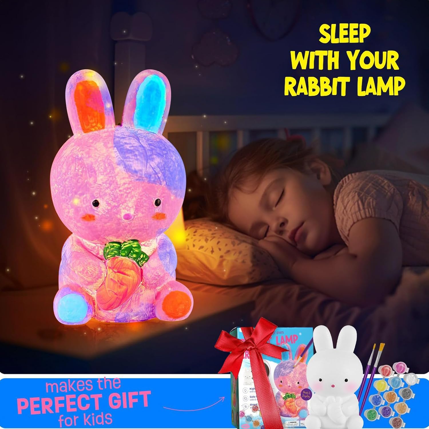 Colorata spinta creativa: esplora i talenti artistici con lo spazio graffiti della lampada per sviluppare i colori migliorando sia idee fantasiose che tecniche di artigianato pratiche Ambiente caldo: lampada a forma di coniglio con luce notturna integrata crea un'atmosfera accogliente e accogliente, ideale per diversi ambienti, mentre mostra la sua dolce estetica dal design 3D Materiale resistente: dispone di Portatile da usare: prestando attenzione alla mobilità, nelle lampade compatte e leggere è facile da trasportare e riporre, adattandosi facilmente alle esigenze di illuminazione interna o esterna Ottimo regalo: un'opzione ideale per i bambini. Questo serve come premuroso e significativo che esprime amore e benedizioni per compleanni e celebrazioni