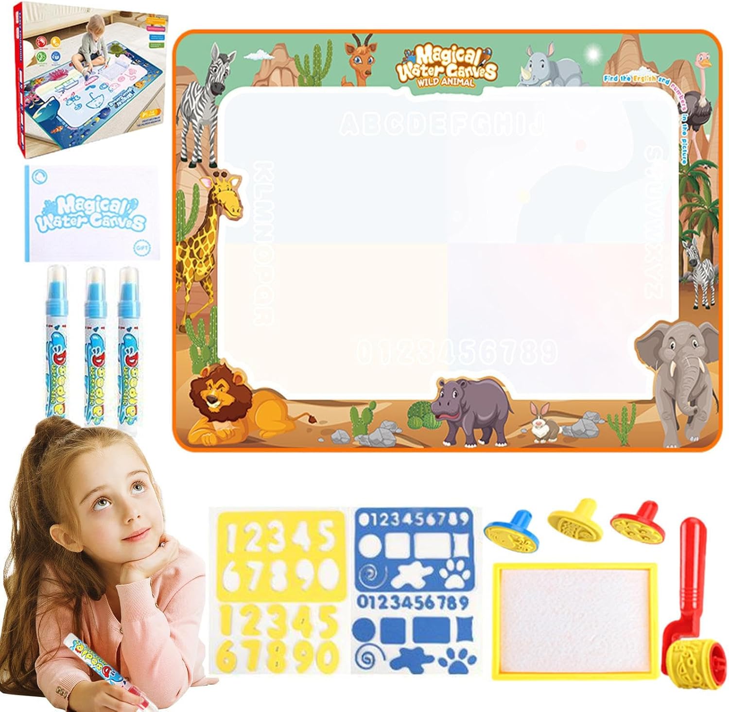 Materiali durevoli: il nostro blocco da disegno per scarabocchi ad acqua è realizzato in tessuto non tessuto di poliestere di alta qualità scelto con cura che garantisce sicurezza e durata. Facile da usare: scopri un modo ecologico di disegnare con il nostro blocco da disegno per scarabocchi ad acqua. Guarda le tue opere d'arte scomparire con la penna per il fascino 'acqua pulita dopo 5-10 minuti per divertirti ancora di più senza bisogno di inchiostro, vernice o pastelli. Sviluppa abilità: il nostro blocco da disegno per scarabocchi ad acqua aiuta a sviluppare la creatività e l'immaginazione del tuo bambino mentre disegna liberamente sulle superfici grandi e riutilizzabili. Inoltre, promuove il potenziamento di abilità come la coordinazione occhio-mano e la percezione dei colori, offrendo un'attività divertente ed educativa per il tuo bambino. Regalo pratico: questo blocco da disegno con scarabocchi ad acqua è un fantastico regalo di compleanno, Ringraziamento o Natale che garantisce creatività senza problemi. Il tappetino riutilizzabile necessita solo di acqua ed è facile da pulire, garantendo ore di divertimento. Facile da riporre: porta la tua creatività ovunque con il design pieghevole di questo blocco da disegno con scarabocchi ad acqua che lo rende facile da trasportare in zaino, permettendoti di usarlo sempre e ovunque ti senti ispirato.