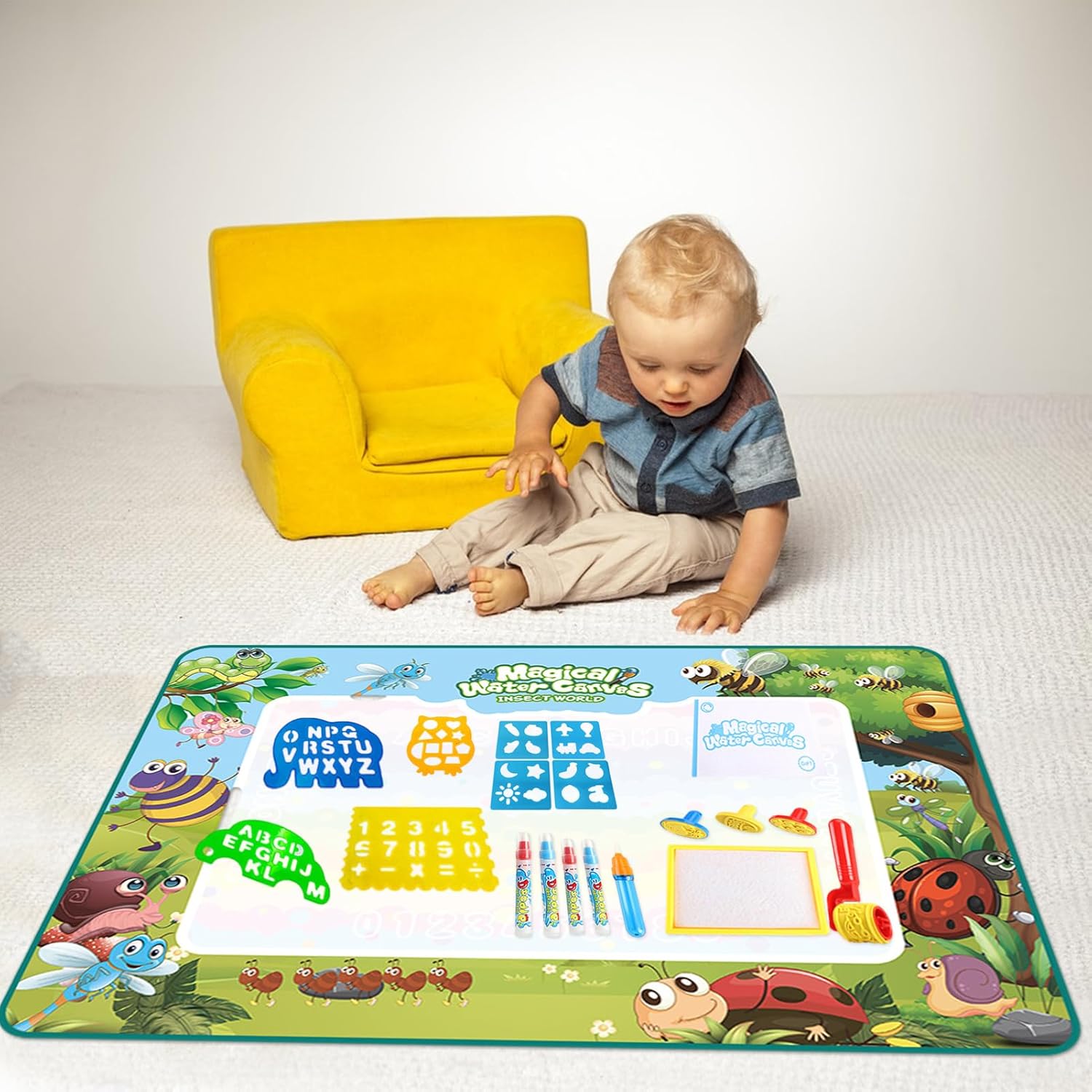 Materiale selezionato: il nostro blocco da disegno per scarabocchi ad acqua si distingue per la qualità superiore, realizzato in tessuto non tessuto di poliestere selezionato che non è solo durevole ma anche sicuro ed ecologico. Comodo da usare: fai emergere il lato creativo di tuo figlio con il nostro blocco da disegno per scarabocchi ad acqua. La penna piena d'acqua consente loro di disegnare e rivelare le loro opere d'arte che scompariranno entro 5-10 minuti, pronte per altri capolavori Ispira la creatività: lascia correre l'immaginazione di tuo figlio con il nostro blocco da disegno con scarabocchi ad acqua che promuove l'espressione creativa migliorando la coordinazione occhio-mano e la percezione del colore. Ideale per sviluppare competenze e stimolare la creatività. Regalo adatto: sorprendi i tuoi bambini con questo blocco da disegno per scarabocchi ad acqua senza disordine. Non è necessario inchiostro o vernice, acqua. Riutilizzabile e facile da pulire, questo tappetino garantisce ore di intrattenimento creativo durante il Ringraziamento, Natale, festività speciali o compleanni. Facile da trasportare: con un design pieghevole, questo blocco da disegno con scarabocchi ad acqua lo rende facile da trasportare in zaino e utilizzarlo sempre e ovunque, consentendoti di utilizzarlo in qualsiasi momento
