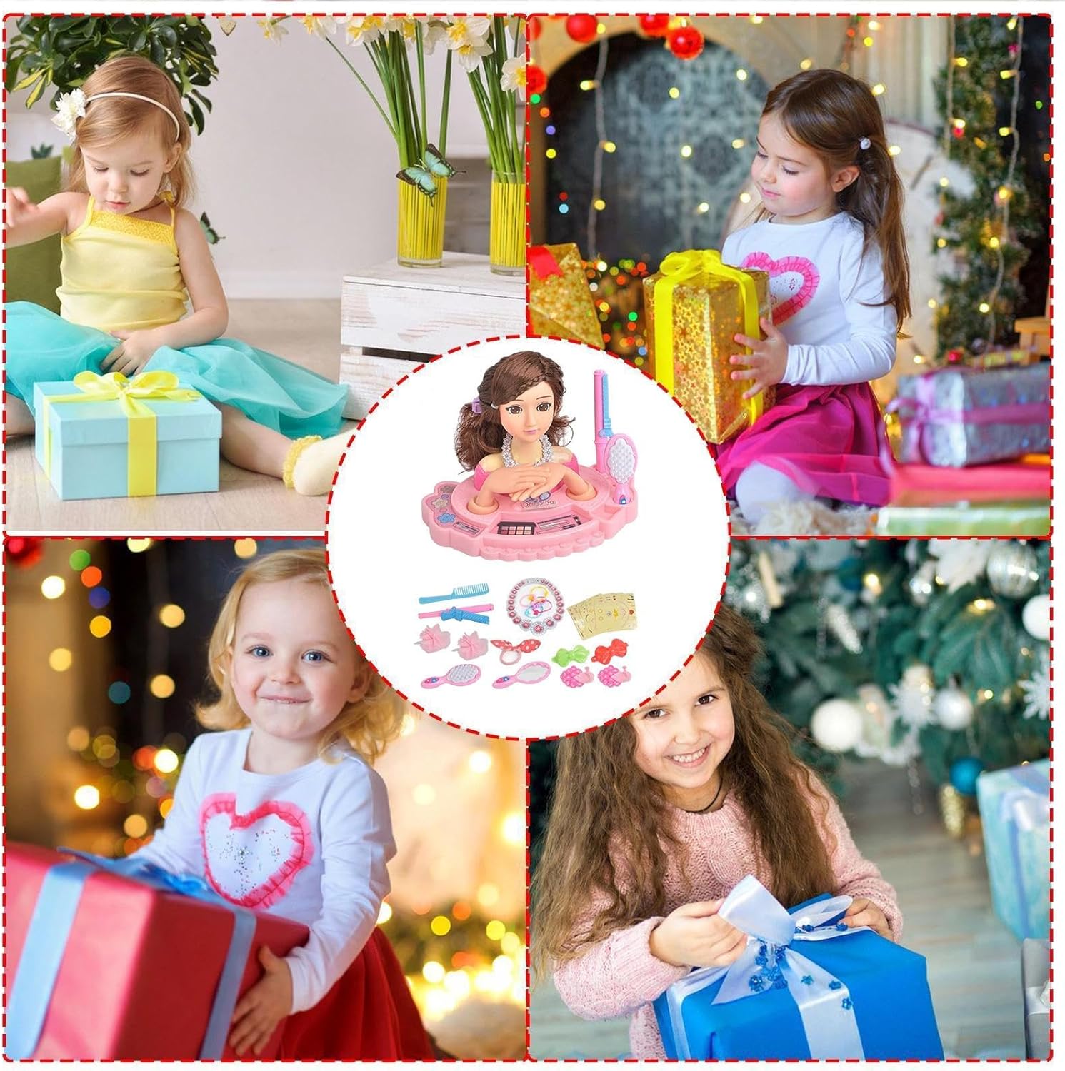 Con accessori colorati: gli accessori colorati ispirano la creatività, migliora la coordinazione occhio-mano e lascia che i loro stili unici per ore di gioco divertenti Fornire diverse varianti di capelli e scene di trucco: Il nostro trucco e parrucchiere giocattolo offre un design della testa di morbido con pelle simulata, caratteristiche delicate e variazioni di capelli e trucco su larga scala, offrendo più opportunità per liberarli dalla loro immaginazione Migliorare l'esperienza di apprendimento: il nostro set di giocattoli per il trucco simulato offre un modo sicuro e piacevole per impararli e migliorare le loro capacità di vita con accessori per parrucchieri e trucco. Incoraggia la creatività, permettendo a sperimentare con look divertenti e sviluppare il loro potenziale artistico Lunga durata: realizzato con materiale ABS sicuro e resistente all'usura, questo giocattolo per il trucco e l'acconciatura da parrucchiere viene fornito con una struttura robusta e stabile che promette un'eccellente resistenza contro danni e usura, rendendolo un'aggiunta duratura alla collezione di giocattoli del tuo bambino Molteplici usi: per chi ama la bellezza. Questo giocattolo per il trucco e il parrucchiere è un ottimo regalo per i giovani stilisti. Ideale per compleanni, feste e vacanze come Ringraziamento e Natale. Nota: non adatto a meno di 3 anni