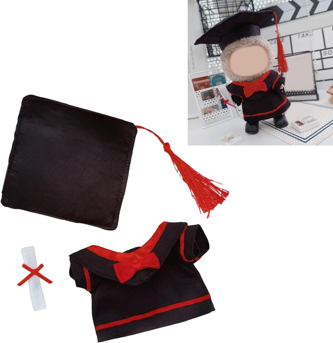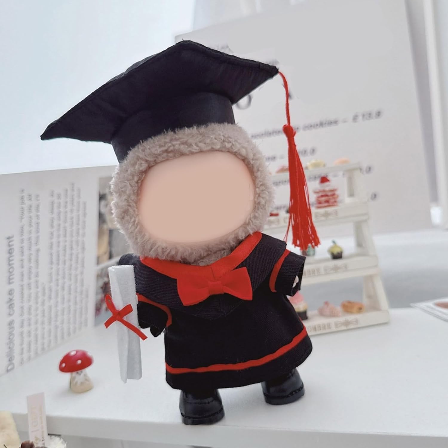 Completa il tuo look da laurea con bambola da 17 cm con questo set da 3 pezzi caratterizzato da un abito accademico dettagliato, cappello da studioso per autentici stili di cerimonia Design per collezionisti di bambole, appassionati di laurea e hobbisti alla ricerca di accessori unici per personalizzare bambole con personaggi da 17 cm Utilizza poliestere selezionato, il set vanta cuciture intricate, dimensioni accurate e dettagli accademici d'epoca che migliorano il valore da collezione Espositore elevato, servizi fotografici a tema laurea o disposizione di bambole cerimoniali con questo vestito accademico su misura L'estetica e l'artigianalità della laurea rendono ogni trasformazione di bambole Figure una celebrazione senza tempo dei risultati accademici