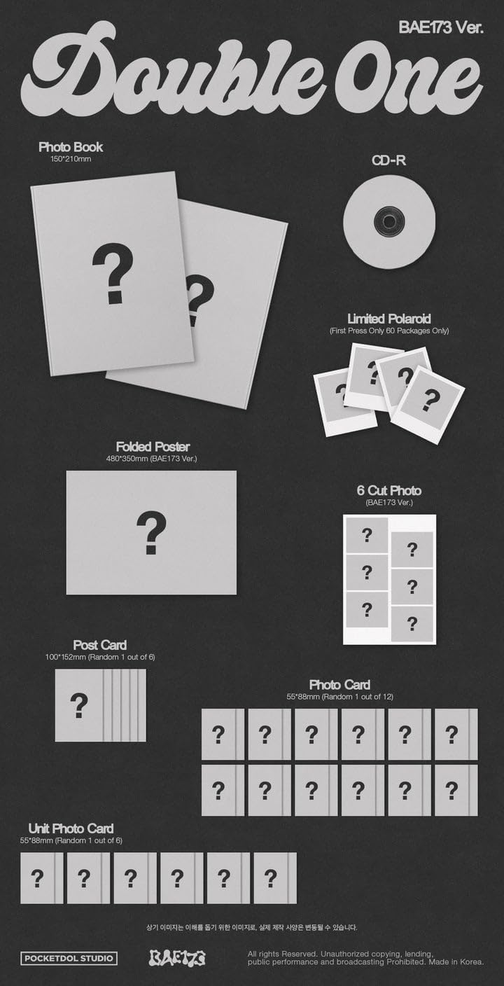 BAE173 ver. : 6 Cut Photo + Postcard (Random 1 out of 6) + Photocard (Random 1 out of 12) + Unit Photocard (Random 1 out of 6)