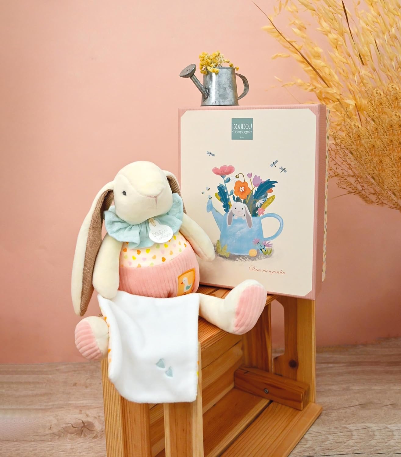PLUCHE LAPIN CON DOUDOU MOUCHOIR: Il duo coniglio erba cipollina e il suo peluche piatto fazzoletto bianco è progettato per portare conforto e tenerezza al bambino fin dalla nascita, questo compagno di gioco offre varie trame che risvegliano i sensi dei bambini fornendo un senso di sicurezza Colori morbidi ed eleganti: con il suo look vintage la sua grande lattina in velluto a coste la sua colleretta blu e le orecchie cadenti, questo peluche convince per il suo fascino i suoi dettagli accurati come l'etichetta tessuta oca e i piccoli cuori stampati aggiungono un tocco di eleganza SCATOLA REGALO RIUTILIZZABLE: questo peluche coniglio con il suo fazzoletto piatto è presentato in una scatola regalo illustrata ad acquerello, impeccabile per riporre i ricordi preziosi del bambino come le sue prime foto o oggetti di nascita una presentazione ordinata per offrire un regalo di nascita ottimale COMPAGNO DI GIOCO E DI SOMMEIL: coniglio cipollina è più di un semplice peluche è un amico fedele che accompagna il bambino nei suoi momenti di gioco e di riposo ottimale per il risveglio sensoriale stimola la curiosità grazie ai suoi vari materiali e al suo design giocoso ASSIURANT DOUDOU PERDU: Doudou e Compagnie leader des doudous in Francia offre un assicuratore a vita per ogni doudou perduto assicurando che questo prezioso compagno possa sempre essere sostituito un pegno di fiducia per i genitori e un conforto per i più piccoli, grazie al suo numero ottimale, Doudou perso viene rapidamente trovato