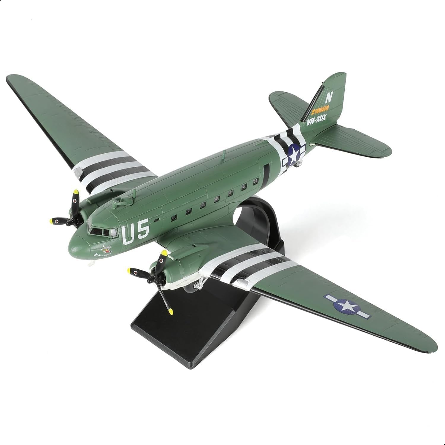 Douglas C-47 Skytrain: Il modello C-47 Skytrain 1/100 è rigorosamente realizzato secondo il vero aereo da trasporto C-47 Skytrain ed è realizzato secondo la scala 1/100. La fusoliera, le ali, la cabina di pilotaggio, il carrello di atterraggio e altre parti del modello di aeromobili in lega metallica C-47 Skytrain sono tutti realizzati secondo la stessa scala. Il C-47 Skytrain tarnsport modello 1/100 prototipi era uno dei principali aerei utilizzati dalle Tigri Volanti per volare sulla Hump Route durante la seconda guerra mondiale. Restauro altamente dettagliato: il kit modello C-47 Skytrain 1/100 è noto per il suo restauro ad alta precisione dei dettagli, presentando perfettamente il design unico di questo aereo da trasporto della seconda guerra mondiale. Ogni dettaglio è stato accuratamente realizzato. Il modello C47 Skytrain in metallo pressofuso è realizzato con materiali di alta qualità, con una consistenza eccezionale. Che si tratti di un display statico o di una visione ravvicinata, le persone possono sentire il fascino tecnologico del C47 Skytrain. Materiale: il modello di aereo C47 Skytrain è realizzato con materiali metallici di alta qualità e raffinato con tecnologia avanzata di pressofusione, riflette pienamente la perfetta combinazione di alta qualità e eccellente artigianalità. La fusoliera metallica di questo modello C-47 transpot è robusta e durevole, con un vero senso di peso e tatto, la vernice è delicata, mostrando una consistenza squisita. Il processo di pressofusione rende liscia la struttura del modello di aeromobile C-47. Decorazione e regalo unici: questo kit di modelli in metallo pressofuso C47 non è solo un bellissimo artigianato, ma può anche essere una decorazione e una collezione. c47 Dakota kit modello aereo 1/100 è molto adatto per gli appassionati militari e collezionisti di modelli da raccogliere o regalare come regalo. Può essere posizionato su una scrivania, vetrina o scrivania da ufficio e può diventare un punto focale accattivante. Questo kit modello 1/100 C-47 Dakota può offrirti divertimento e soddisfazione infiniti. Acquisto senza preoccupazioni: questo kit modello di trasporto C47 1/100 utilizza una scatola di carta robusta e durevole come imballaggio esterno per garantire che il modello sia completamente protetto durante il trasporto per evitare danni. Aderiamo sempre a rigorosi standard di produzione, ogni anello di questo kit di modelli di aeromobili transpot 1/100 C47 è accuratamente controllato per garantire che ogni cliente possa ricevere prodotti di alta qualità. Se avete problemi con il modello di aereo SEBUNAS non esitate a contattarci.