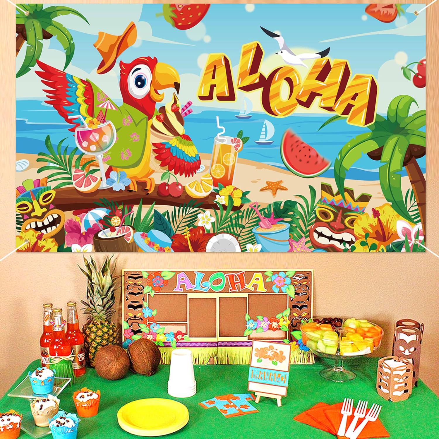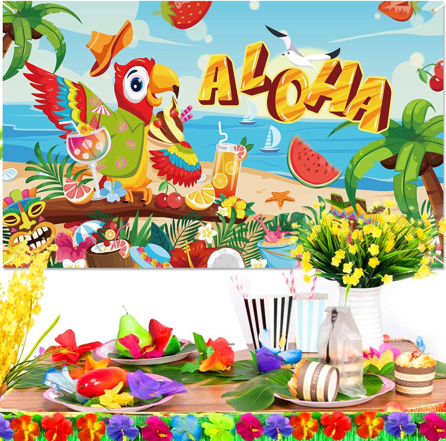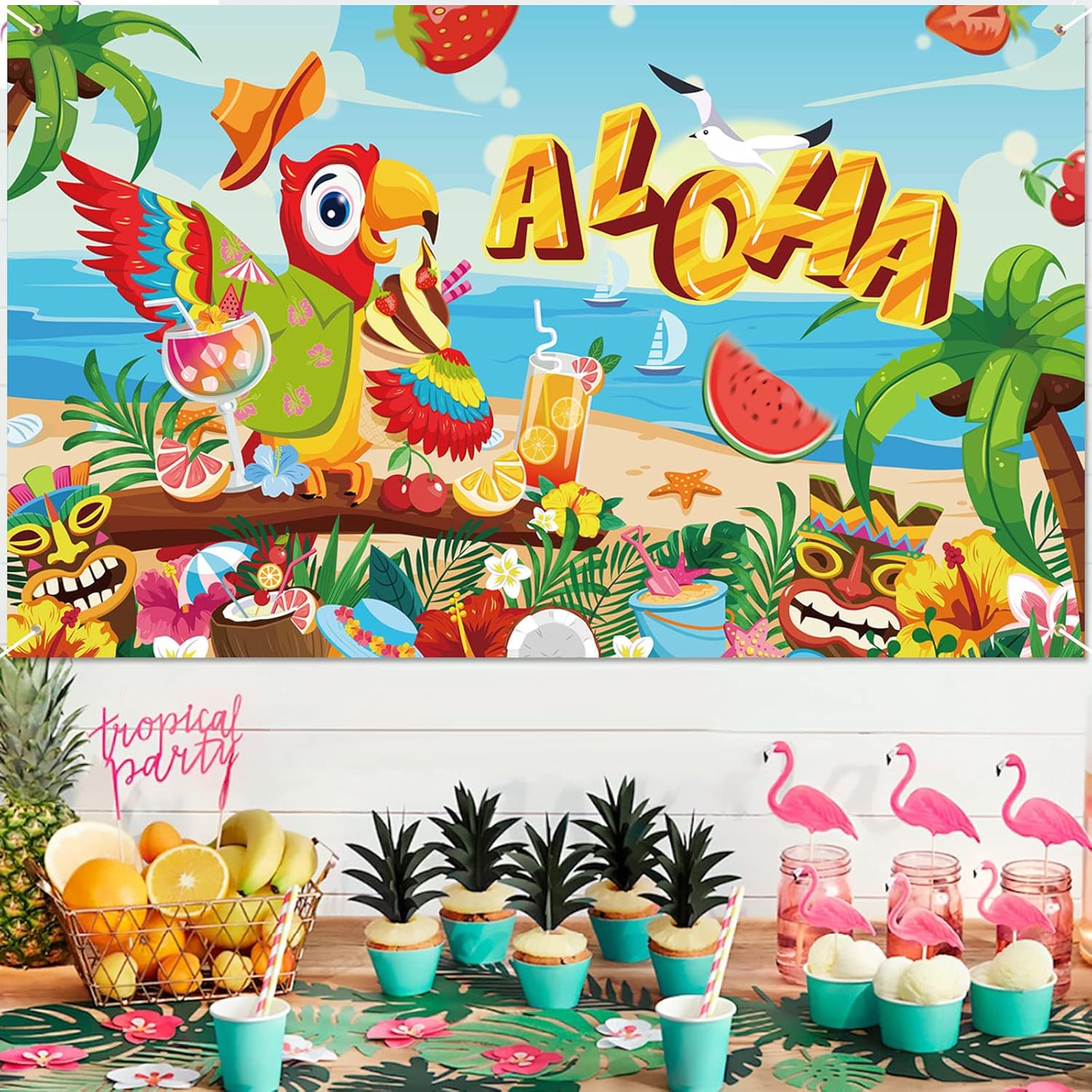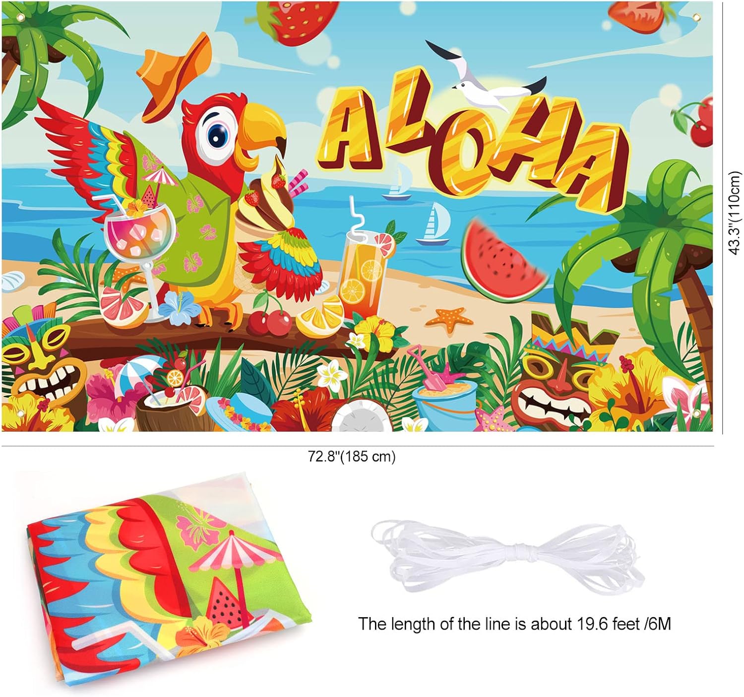 🦉【Banner hawaiano Aloha】1 banner in tessuto Aloha (72,8 * 43,3 pollici / 185 * 110 cm), una corda (19,6 piedi / 6 m). Il banner con sfondo hawaiano è perfetto per la decorazione di feste tropicali hawaiane, decorazioni per giardini per feste estive all'aperto. 🍹【Design del pappagallo da spiaggia】 - "Aloha", pappagallo, albero di cocco, fiori di ibisco, foglie di palma, palma, plumeria, cocco, skateboard, maschera Tiki, gabbiano, ombrello da cocktail, cupcake, cappello, pompelmo, ciliegia, fragola, spiaggia, mare, ecc. Il colorato striscione con scena di spiaggia tropicale è adatto per decorare la tua festa hawaiana all'interno e all'esterno. 🥥 【Decorazioni tropicali hawaiane】 Banner Aloha da spiaggia adatto per decorazioni estive per feste in piscina sulla spiaggia, decorazioni per feste estive tropicali, decorazioni per interni ed esterni per feste tropicali hawaiane, decorazioni per bar Tiki, decorazioni per barbecue Luau estivo, decorazioni di compleanno a tema hawaiano. 🍍 【Alta qualità】 Banner da spiaggia estivo realizzato in tessuto di poliestere, non plastica, rame di alta qualità che non arrugginisce, durevole, stampa digitale, colori brillanti, elevata solidità del colore! Puoi appendere il banner su porta, parete, giardino, stanza, soffitto, camino, tavolo, albero, finestra, ecc. Altri oggetti di scena hawaiani per cabine fotografiche, decorazioni da appendere hawaiane, stelle filanti hawaiane, bicchieri da festa hawaiani, palloncini hawaiani, visita il negozio DPKOW.