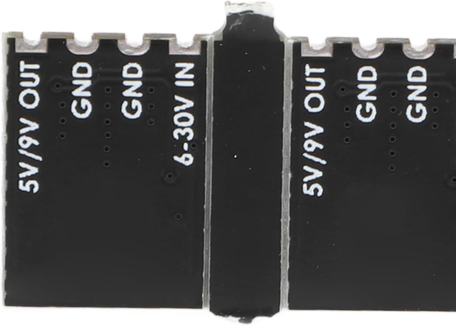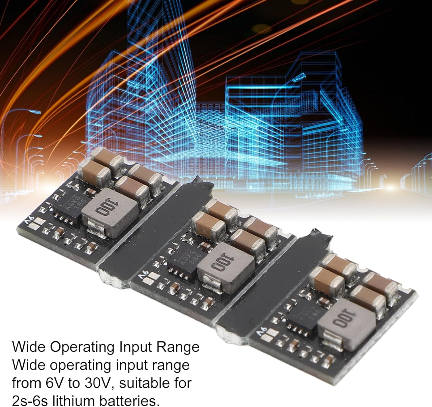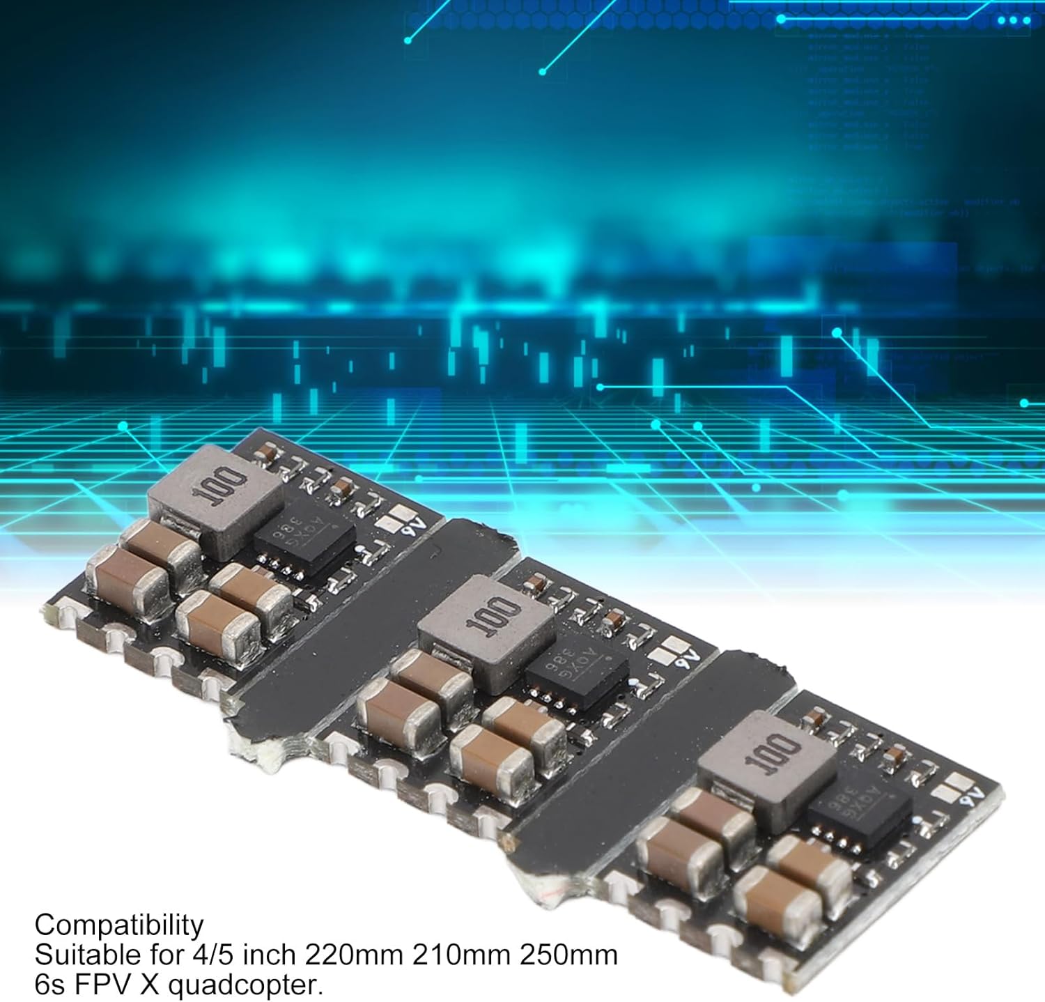 ALTA EFFICIENZA: questo regolatore step-down sincrono ad alta efficienza può stabilizzare la tensione di uscita per garantire un funzionamento stabile dell'aereo e fornire un supporto di alimentazione affidabile. TENSIONE DI USCITA REGOLABILE: l'uscita è regolabile ed è possibile scegliere l'uscita 5 V o 9 V, che può rispondere in modo flessibile alle esigenze di alimentazione di diversi scenari. Per ottenere 9 V è necessario collegare a ponte due pad. AMPIA GAMMA DI TENSIONE IN INGRESSO: si applica a un'ampia gamma di tensione in ingresso da 6 V a 30 V, adatta per batterie al litio 2s‑6s, soddisfacendo le esigenze di alimentazione di un'ampia gamma di aeromobili. MODELLO APPLICABILE: Questo regolatore step-down è compatibile con il quadricottero FPV X da 4/5 pollici 220mm 210mm 250mm 6s, come per Martian II 220 QAV250 QAV210 X210. CORRENTE DI CARICO ELEVATA: il regolatore step-down del quadricoptero ha una corrente di carico continua di 1,5 A, fino a 2,5 A 5 s/min, che è stabile durante il funzionamento.