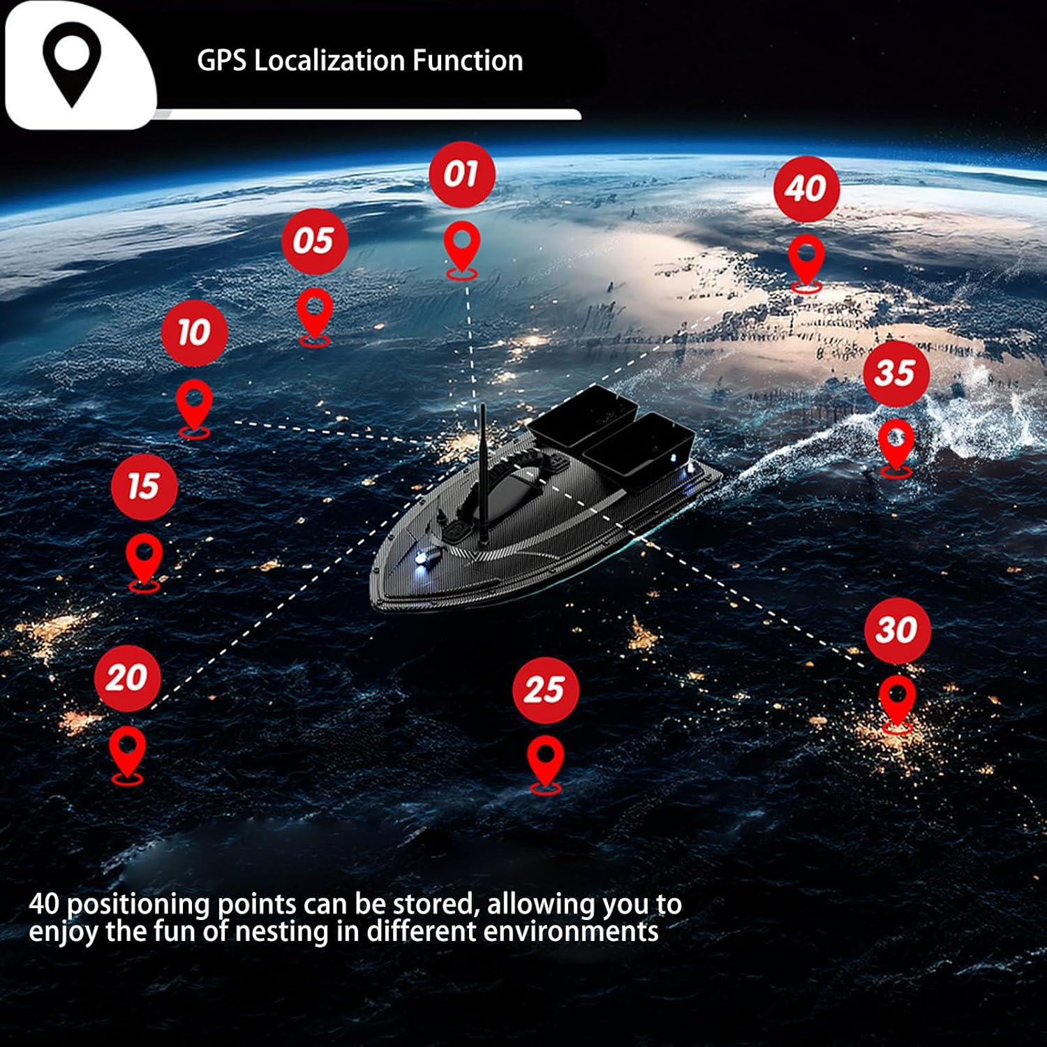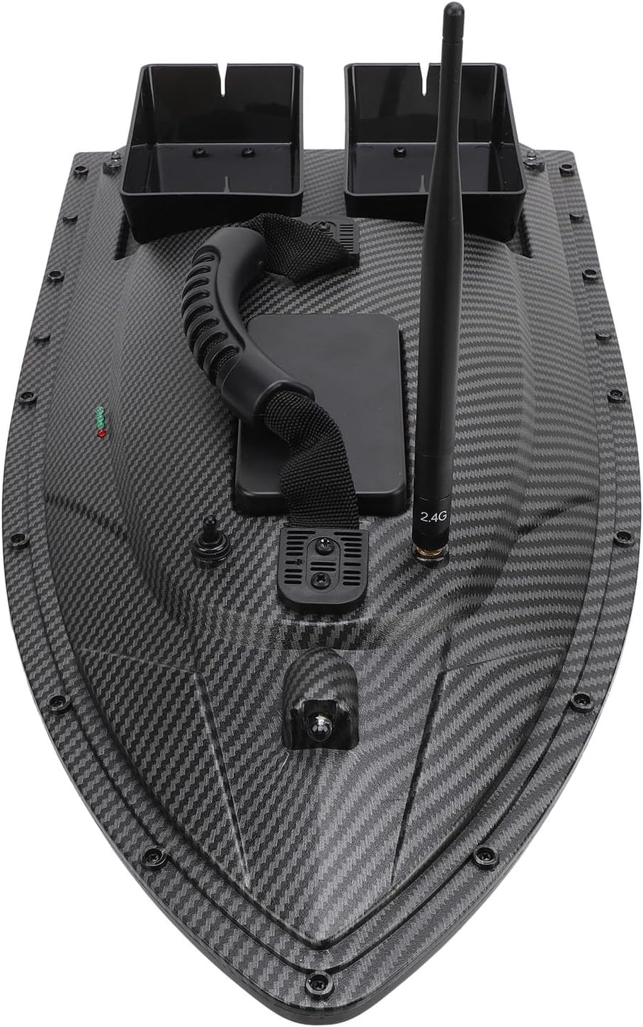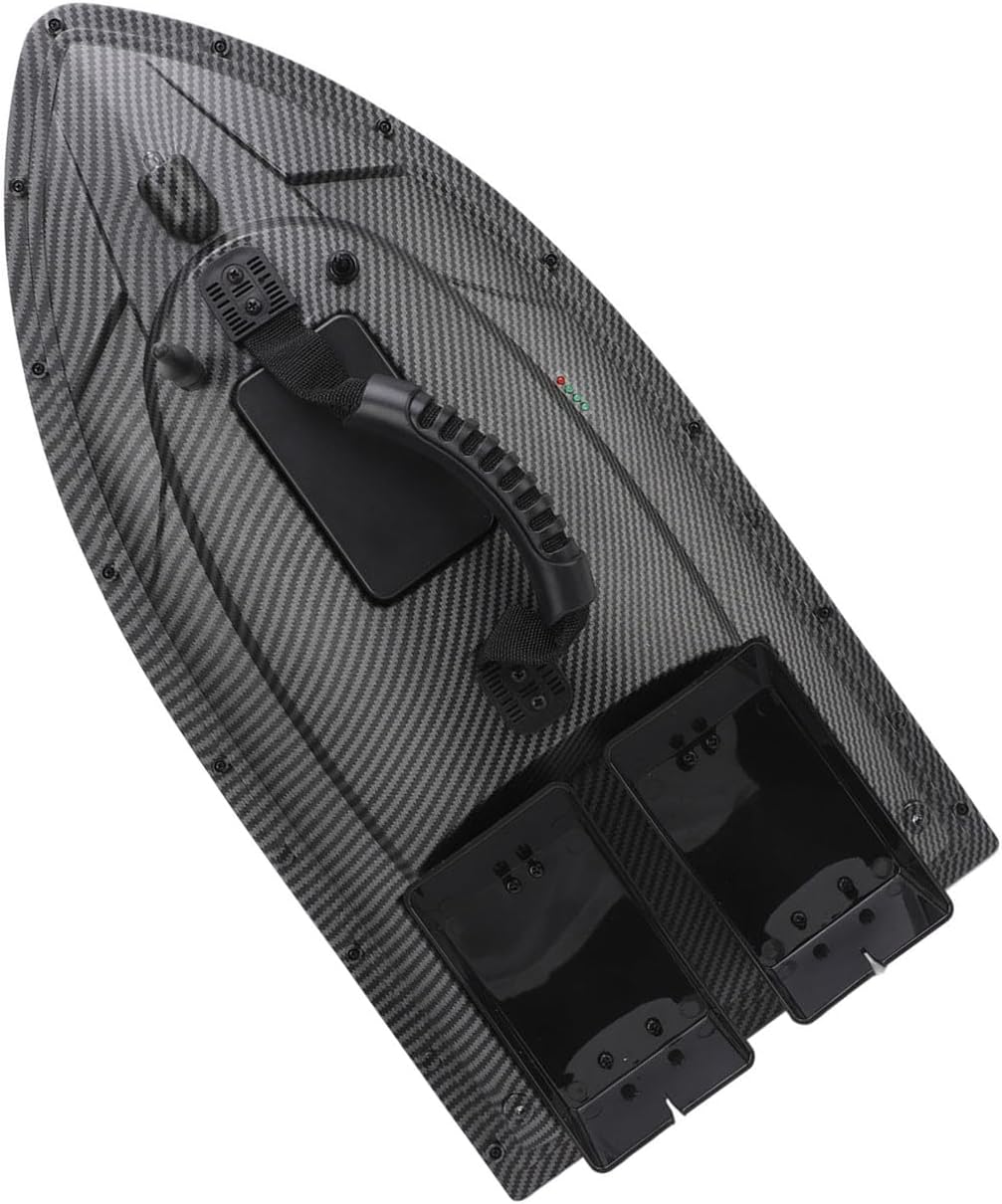 Doppi motori con copertura protettiva: progettati con doppi motori e coperture protettive per prevenire efficacemente le interferenze delle piante acquatiche e dei detriti sulle eliche. Il vano batteria situato al centro dello scafo offre grande equilibrio e stabilità per prestazioni ottimali. Distanza del telecomando fino a 500 metri con trasmissione stabile del segnale. 40 punti di memoria: il peschereccio RC supporta 40 punti di posizionamento di memoria per la crociera automatizzata, consentendo un funzionamento conveniente per il lancio preciso 'esca e il ritorno automatico. Dispone di recinzione elettronica con un limite di distanza di 150 metri per maggiore controllo e sicurezza. Tramogge a doppia esca: il design a doppia tramoggia per esca consente la costruzione precisa di nidificazioni in vasti ambienti di pesca. Ogni tramoggia può essere utilizzata separatamente, con una capacità di carico di circa 1,5 kg. Robusto materiale ABS: il corpo principale della barca è costruito utilizzando materiale tecnico ABS con stampaggio a iniezione una tantum, fornendo un'eccezionale resistenza agli urti e all'usura. Può resistere a forti venti e onde, garantendo l'impermeabilità per evitare problemi di perdite ed è in grado di funzionare normalmente con di forza da 7 a 8. Luce notturna di governo: le luci di navigazione su entrambi i lati della barca indicano le istruzioni di governo dal telecomando con i corrispondenti messaggi di luci rosse. Ciò consente agli operatori di identificare la direzione 'imbarcazione in base alle luci, mentre il faro luminoso aiuta a riconoscere la direzione di navigazione 'imbarcazione durante l'utilizzo a lunga distanza.