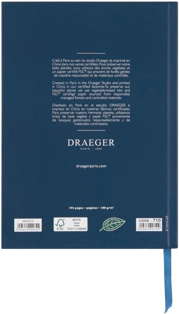 IL PIACERE DI RAGGRUPPARE I TUOI NOTE: Con il nostro grazioso quaderno “Note”, scrivi tutto quello che vuoi: i tuoi pensieri, i tuoi obiettivi, le tue liste di cose da fare personali o professionali. Tutti i tuoi appunti saranno raggruppati in un unico taccuino e saranno facili da trovare. FORMATO PRATICO: porta il tuo quaderno al lavoro, a scuola, ovunque con te, per annotare tutto ciò che è importante. Questo quaderno in formato A5 (15 x 21 cm) può facilmente scivolare nella borsa. Le 192 pagine sono a righe. Puoi contrassegnare la pagina corrente utilizzando il nastro di raso attaccato al taccuino. Copertina rigida e grammatura di 100 g/m². PERSONALIZZA IL TUO NOTEBOOK: Draeger ti offre vari abbellimenti (adesivi, stencil, timbri, ecc.) per decorare il tuo notebook secondo i tuoi gusti e desideri CARTA MISTA CERTIFICATA FSC: Per preservare il nostro bellissimo pianeta, utilizziamo inchiostri vegetali e carta certificata FSC che proviene da foreste gestite in modo responsabile e materiali controllati. DESIGNER, REGALI E ACCESSORI: Draeger ha scritto alcune delle pagine iconografiche più belle del XX secolo, lavorando per grandi nomi del lusso e collaborando con artisti rinomati come Dalì, Picasso, Cocteau e Matisse. Oggi Draeger continua a concentrarsi su prodotti di qualità, per offrire felicità ed emozioni: bellezza delle immagini, eleganza dei messaggi, nobiltà dei materiali e perfezione del design.