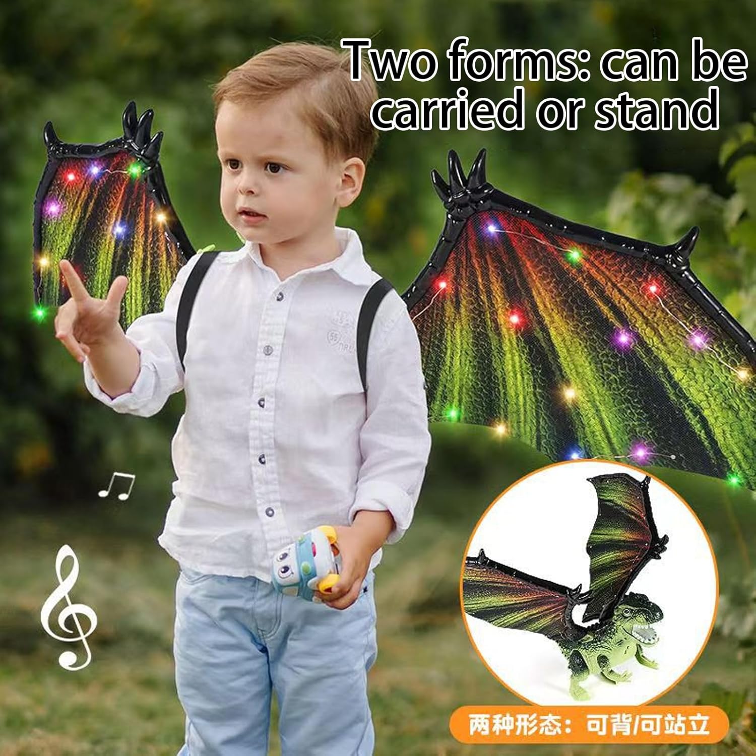 Selezione della modalità interattiva: più modalità migliorano l'interazione dell'utente, poiché il primo livello attiva luci, musica e ali; Il secondo livello funziona solo con luci e ali; e il terzo livello è consapevole di transizioni e di un grande controllo sull'esperienza sensoriale in modo coerente Leggero e regolabile: Sperimenta il comfort con la costruzione leggera delle ali di Dragon e le cinghie completamente regolabili, progettate per fornire una vestibilità sicura ma morbida per facilità d'uso tutto il giorno. Divertimento migliorato con luci a LED: progettato con affascinante illuminazione a LED e musica ritmica, le ali del drago portano effetti impressionanti che amplificano la gioia e affascinano il pubblico senza sforzo Adatto per molte occasioni: ideale per spettacoli di feste, questo prodotto aumenta l'interazione genitore-figlio e si adatta ai festival, offrendo un uso versatile in ambienti interni ed esterni senza sforzo Configurazione adattabile: passa tra le modalità zaino e stand-up senza sforzo per soddisfare le varie esigenze, garantendo adattabilità per lavoro, viaggi o attività ricreative