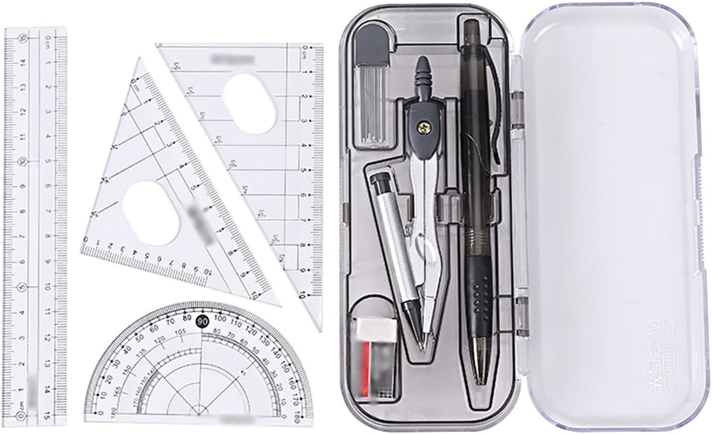 This compass tool is perfect for students, teachers, architects, math experts, artists, engineers, designers and more.Very suitable for drawing circles or arcs, suitable for students, teachers, engineers, designers, artists, etc.The 7-piece compass kit is packed in a small box, which is easy to store, and fits easily into a pencil case, and the size is just right.Product size: 168 * 68mm / 6.61 * 2.68inDrawing compass is suitab