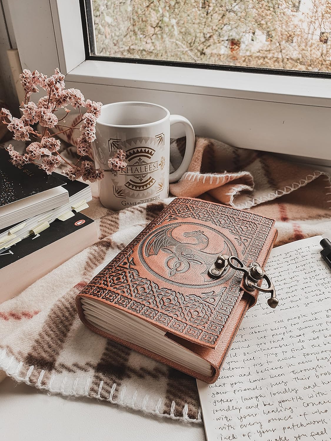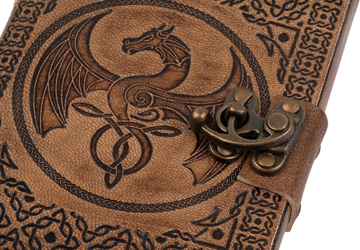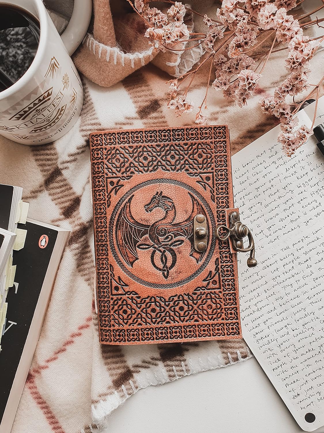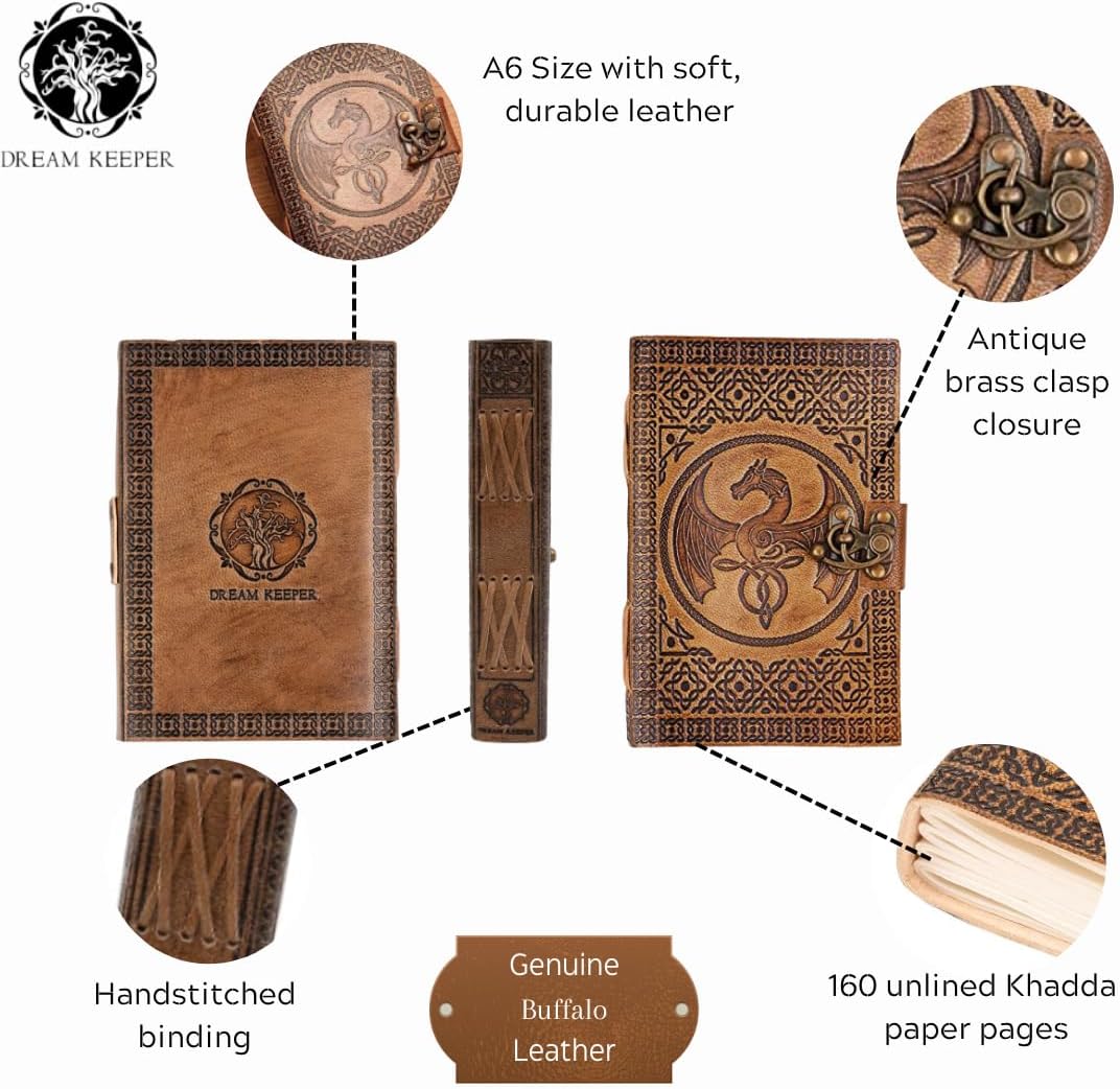 Un viaggio in un mondo fantastico: che tu sia un appassionato narratore o un appassionato appassionato che ama il folklore fantasy, il taccuino in pelle DreamKeeper è un must nella tua collezione. Elegante e unico, questo quaderno vintage ti aiuterà a riscoprire la tua passione per la scrittura a mano con un tocco stravagante. Splendido lavoro artigianale: il nostro taccuino è una squisita dichiarazione di eleganza e durata senza tempo, con un design premium realizzato con autentica pelle goffrata, accuratamente lucidata per ottenere una trama unica e arricchita e dare la sensazione di un lucchetto in metallo celtico. Carta di cotone sostenibile: questo taccuino con serratura offre un'esperienza di scrittura coinvolgente grazie alla carta di cotone riciclata sostenibile. Liscia e impeccabile, la carta garantisce una scrittura facile senza sbavature o fuoriuscite di inchiostro. Scatena la tua mente creativa: con pagine di carta liscia e una splendida copertina in rilievo con drago celtico, questo quaderno in pelle ispira avventura, magia e bellezza, invitandoti a scrivere pensieri, ricordi, citazioni o appunti o a trasformare il diario in un quaderno di schizzi o un libro delle ombre. MERAVIGLIOSA IDEA REGALO: Se stai cercando un regalo unico per gli amanti della fantasia, questo album da disegno in pelle è la strada da percorrere. Attraente, elegante e dal design superbo, questo diario rilegato in pelle fatto a mano è un regalo meraviglioso per un compleanno, Natale o altre occasioni speciali.