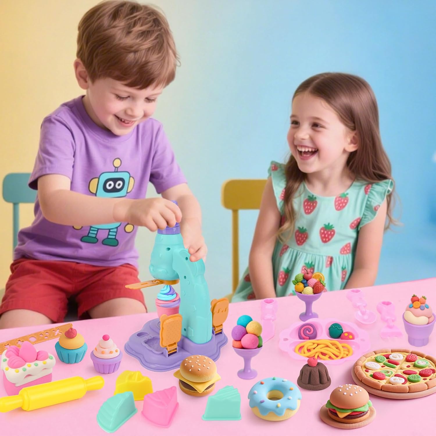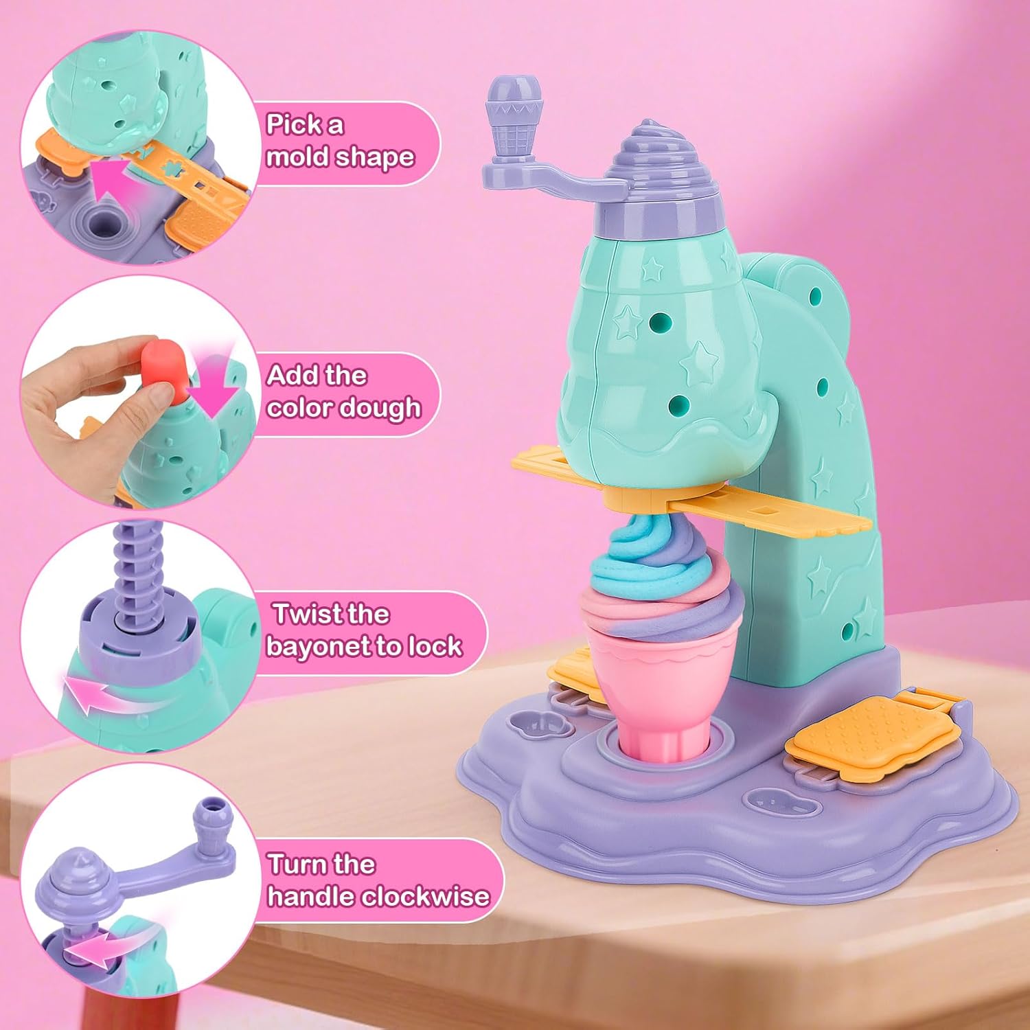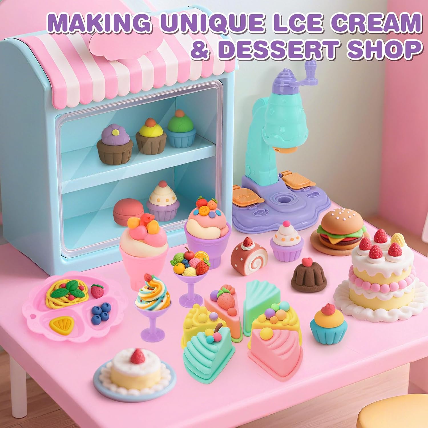 【Crea il Tuo Gelato Divertente】- Questo pasta modellabile bambini include 1 gelatiera, 12 barattoli di pasta colorata, 6 stampi per torte, 6 stampi per ghiaccioli, 2 inserti per gelato, 2 coppette per gelato, 2 coppette per dessert, un set di cucchiaio, coltello e forchetta, un mattarello, una base per impasto e molto altro. Ispira i bambini a esplorare la loro immaginazione e a creare divertenti capolavori a tema culinario 【Pasta Colorata e Sicura】- Include 12 barattoli di pasta argilla da modellare brillante e mescolabile, realizzata con grano naturale. Morbida, non appiccicosa e riutilizzabile. I bambini possono mescolare i colori utilizzando la tabella colori. (Suggerimento: conservare la pasta in barattolo dopo l'uso per mantenerla morbida.) 【Gelatiera Facile da Usare】- Basta aggiungere plastilina colorata, girare la manovella in senso orario e guardare il "gelato" uscire! L'impasto ultra morbido e il design adatto ai bambini la rendono facile da usare anche per le manine più piccole 【Giocattolo Educativo per Bambini】- Questo divertente set di impasti a tema cucina stimola le abilità manuali, la creatività e l'immaginazione. Ottimo per insegnare ai bambini le basi della preparazione del cibo, migliorando al contempo concentrazione e coordinazione 【Regalo Perfetto per Bambini e Bambine】 - Questo macchina gelato das pasta modellabilea tema gelato è un giocattolo perfetto per attività artistiche e artigianali per bambini dai 3 anni in su. Ideale per Natale, compleanni e altre occasioni speciali