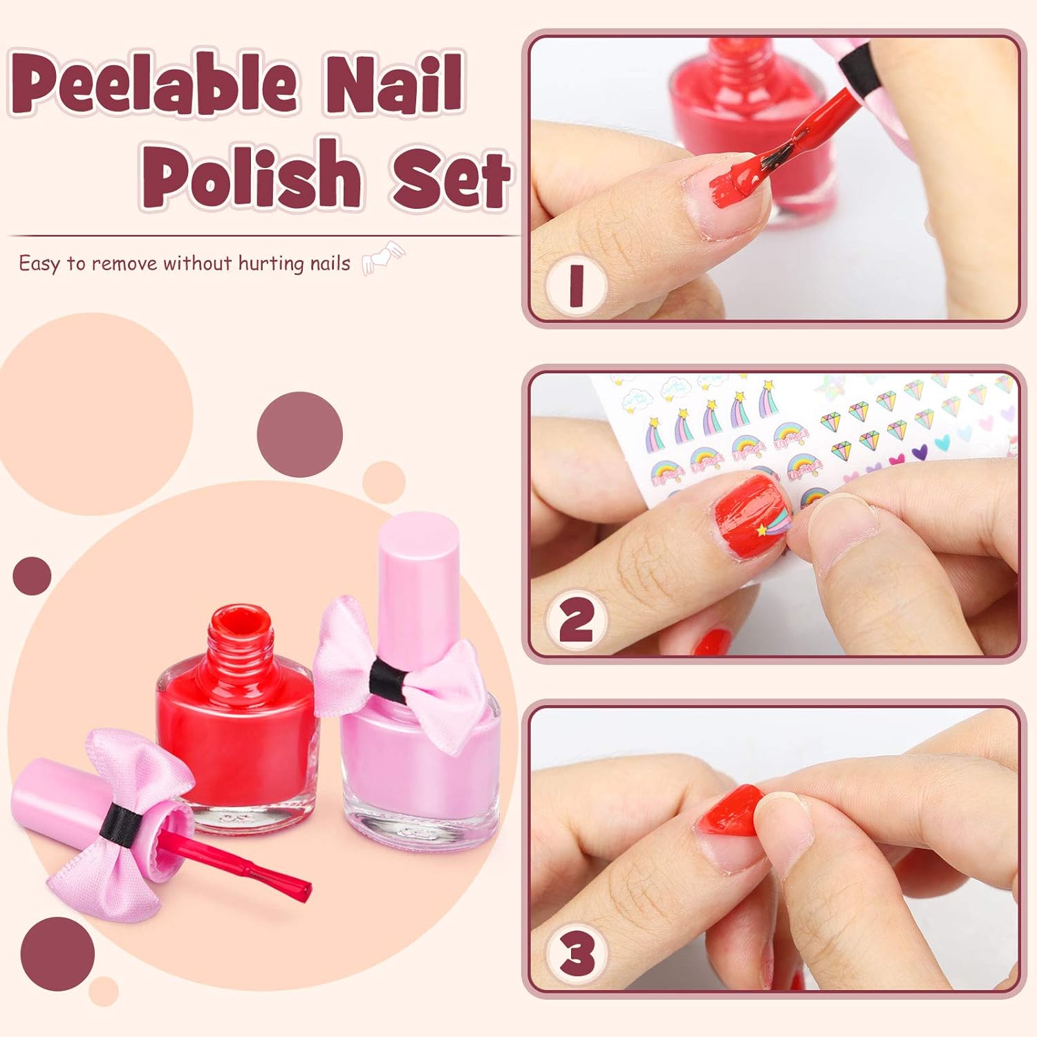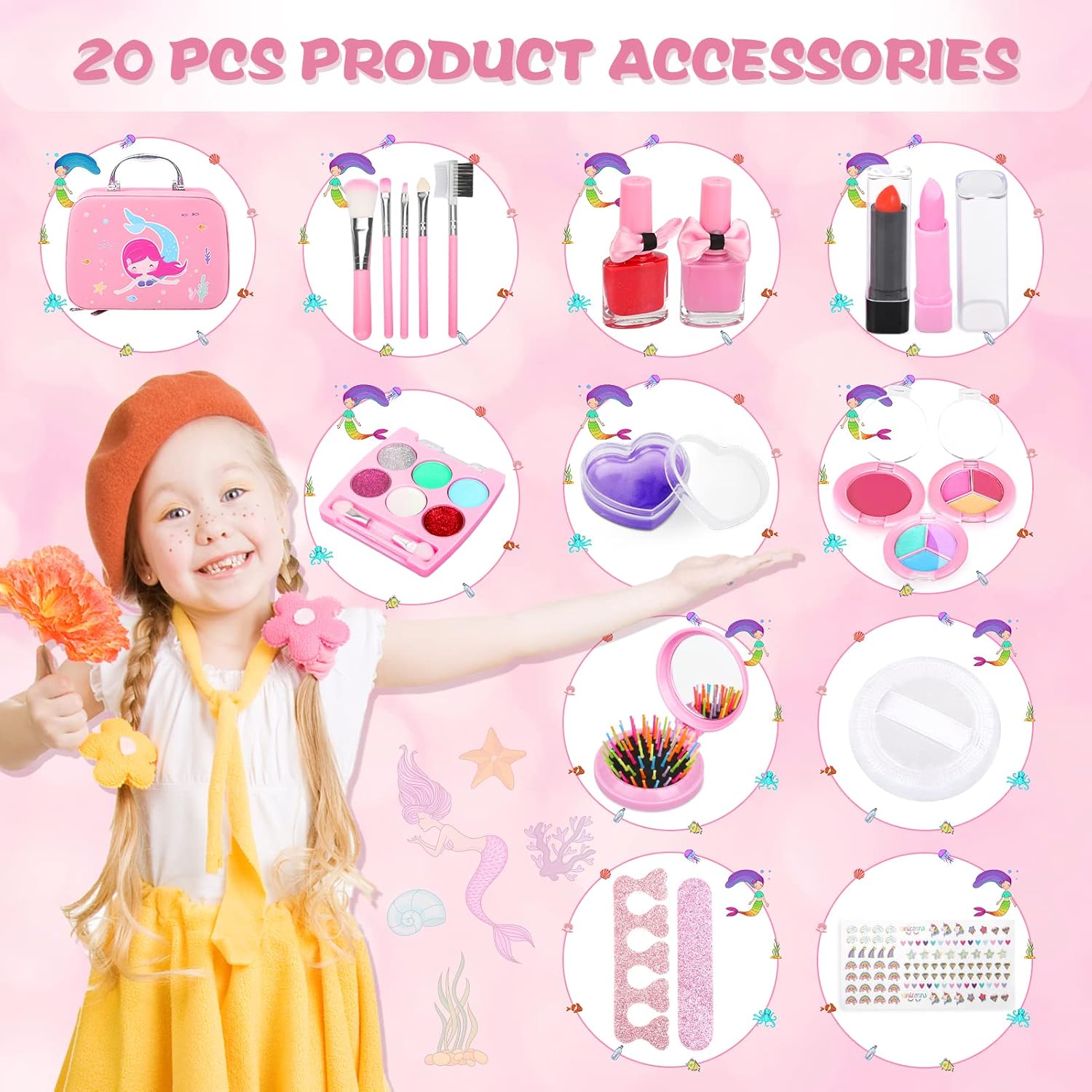 [Real Makeup Kit] Si consiglia di eseguire un test dell'orecchio posteriore nei bambini con pelle sensibile. [Set smalti per unghie] Include separatori per dita dei piedi e 2 smalti colorati per i bambini per trattare la decorazione delle unghie fai-da-te. Smalto a base d'acqua facile da rimuovere. [Non tossico e lavabile] Tutti i cosmetici sono lavabili e facili da rimuovere con acqua, non tossici, sicuri per i bambini. [Soddisfa la curiosità dei bambini] Intrattieni tuo figlio per ore, migliora le sue capacità pratiche e la percezione della bellezza. [Regalo di Natale] Ogni principessa sogna di possedere il suo kit per il trucco, il kit per il trucco lavabile è un regalo perfetto per tua figlia a Natale o al compleanno.