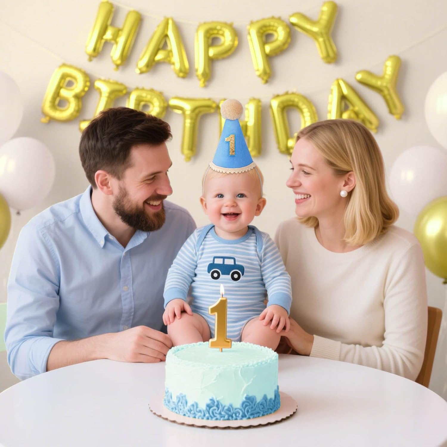 DRESHOW Cappello da 1 compleanno per bambino Primo compleanno Cappellino a cono da festa con pon pon Torta Smash Puntelli per foto Decorazione copricapo per ragazze e ragazzi