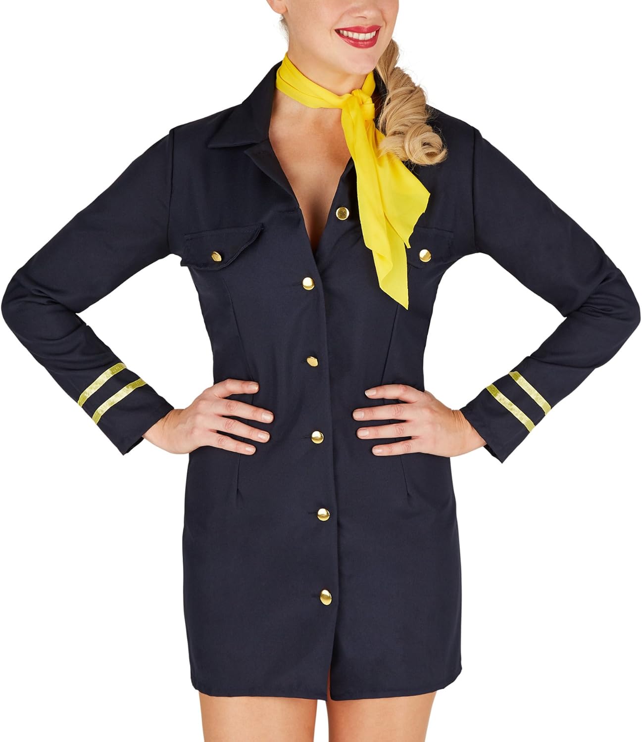 Questo costume da hostess è composto da un abito molto corto, un cappello e un foulard. Materiale: 100% poliestere. Si prega di allacciare le cinture; l'aereo sta per decollare! La hostess ripete ancora le istruzioni più importanti, poi dà il via alla festa. A carnevale sfruttate la possibilità di calarvi nel ruolo di una hostess sexy e attraente grazie a questo costume. Mini-abito sexy // Cappello da hostess // Grazioso foulard abbinato Con questo costume da hostess attirerete gli sguardi di tutti // Il costume è ideale non solo per il carnevale, ma anche per feste a tema // Avvertenza: scarpe e borsa non sono comprese nella fornitura.