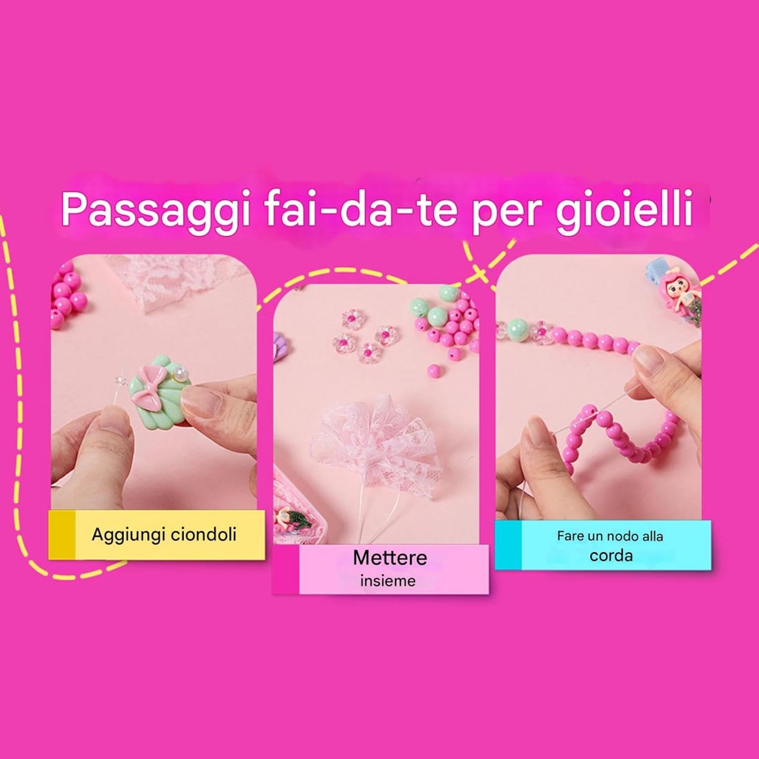 Migliora le capacità creative: tutti i bambini possono immergersi nel mondo 'arte indossabile, progettando e ricreando bracciali, anelli e collane, migliorando la loro immaginazione con ogni pezzo unico realizzato Nessun danno ai bambini: i genitori possono fidarsi di questo kit per la produzione di braccialetti, in quanto è realizzato con materiali sicuri e presenta una copertura , dimensionata in modo eccellente per piccole mani Migliora le capacità motorie: incoraggia l'apprendimento e lo sviluppo e competenze migliorando il riconoscimento del colore e il coordinamento degli occhi a mano, raffinando le capacità motorie sottili attraverso l'ordinamento, il conteggio e la cattura di immagini Scelta presente premurosa: dai i tuoi gioielli a lavorare a genitori o amici con questo kit di creazione di braccialetti alla moda, il miglior regalo per le ragazze in compleanni, vacanze e Natale, instillando l'orgoglio per i bambini Compatto e leggero: incoraggiare la creatività all'aperto, questo kit per la creazione di braccialetti presenta un design portatile e una scatola di stoccaggio organizzata per le ragazze per creare facilmente bellissimi disegni ovunque vadano, mantenendo il loro lavoro pulito e ordinato