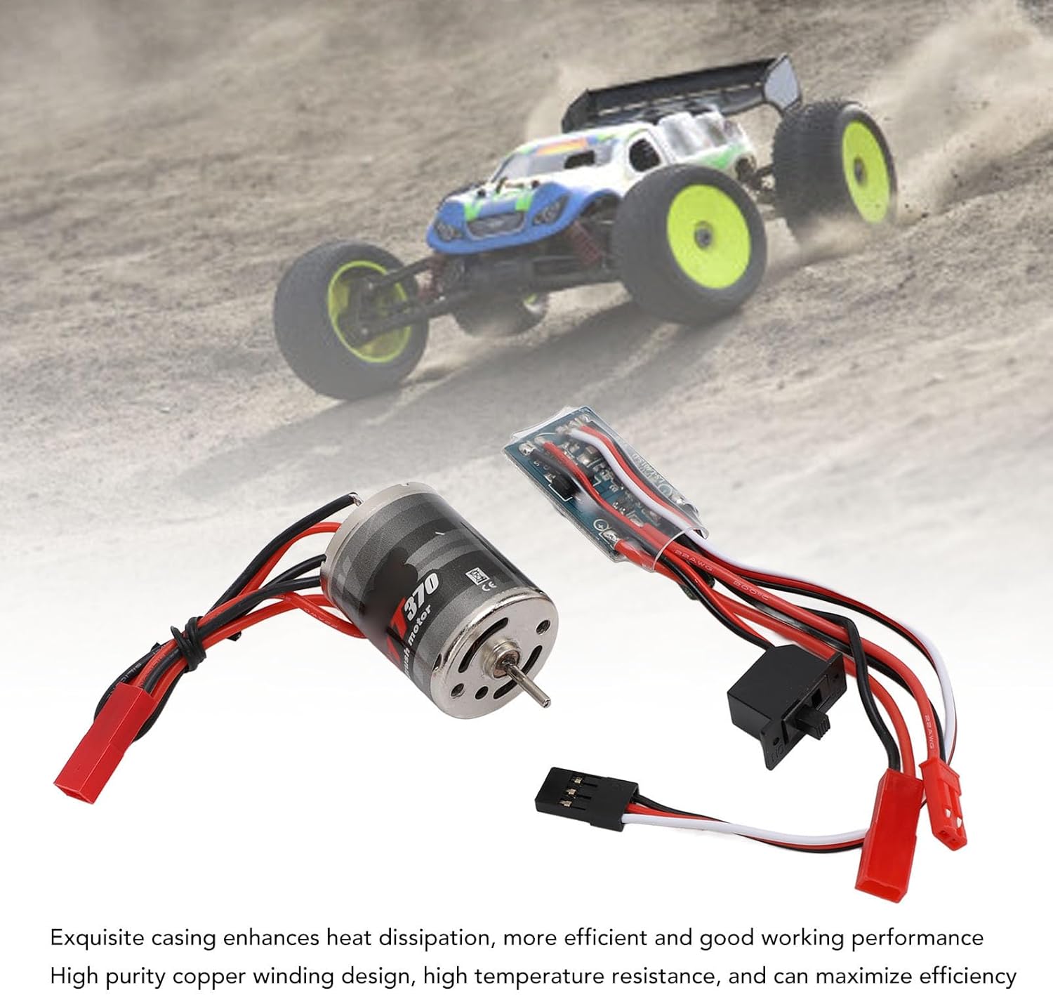 [Controller versatile] Il controller della spazzola 30a fornisce funzioni di avanzamento, retromarcia e freno, adatte a vari veicoli RC in scala 1:16 e 1:18. [Installazione semplice] Il controller utilizza il ricevitore come fonte di alimentazione, garantendo una facile installazione e facilità d'uso. [Costruzione robusta] Questo motore a spazzole è dotato di un involucro esterno in acciaio inossidabile per un'efficiente dissipazione del calore, riducendo il rumore e massimizzando l'efficienza di conversione della potenza. [Materiali premium] Il motore 31T utilizza avvolgimenti in rame di elevata purezza e una costruzione precisa per garantire durata e prestazioni di lunga durata. [Design compatto] Questa combinazione leggera e portatile di motore ed ESC non aggiungerà peso eccessivo alla tua auto RC, rendendola una pratica opzione di aggiornamento.