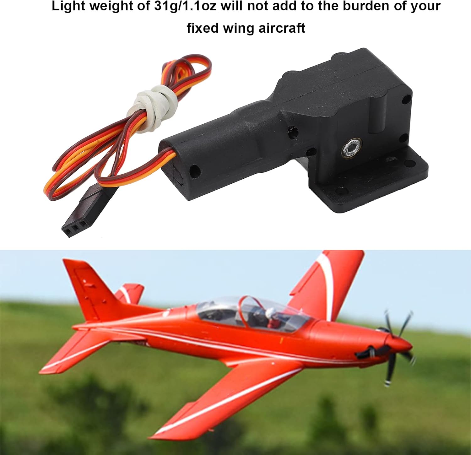 Materiale superiore: il carrello di atterraggio elettrico dell'aereo RC è realizzato in plastica di alta qualità, lega di alluminio e rame, che è robusto, sicuro ed ecologico e ha una lunga durata. Migliora le prestazioni generali: il peso leggero di 31 g non aumenta il carico sul tuo aereo ad ala fissa, quindi il tuo aereo RC ha prestazioni più stabili. Compatibile con: il carrello di atterraggio elettrico degli aerei RC è appositamente progettato per gli aerei ad ala fissa RC da 1,1 milioni e i due sono molto compatibili. Comodo da installare e rimuovere: comodo da installare, è possibile sostituire direttamente gli accessori vecchi o danneggiati per ripristinare le prestazioni. Pezzo di ricambio: è un accessorio altamente simulato che può conferire al tuo aereo ad ala fissa un aspetto più fresco e unico. È una buona parte di ricambio di aggiornamento.