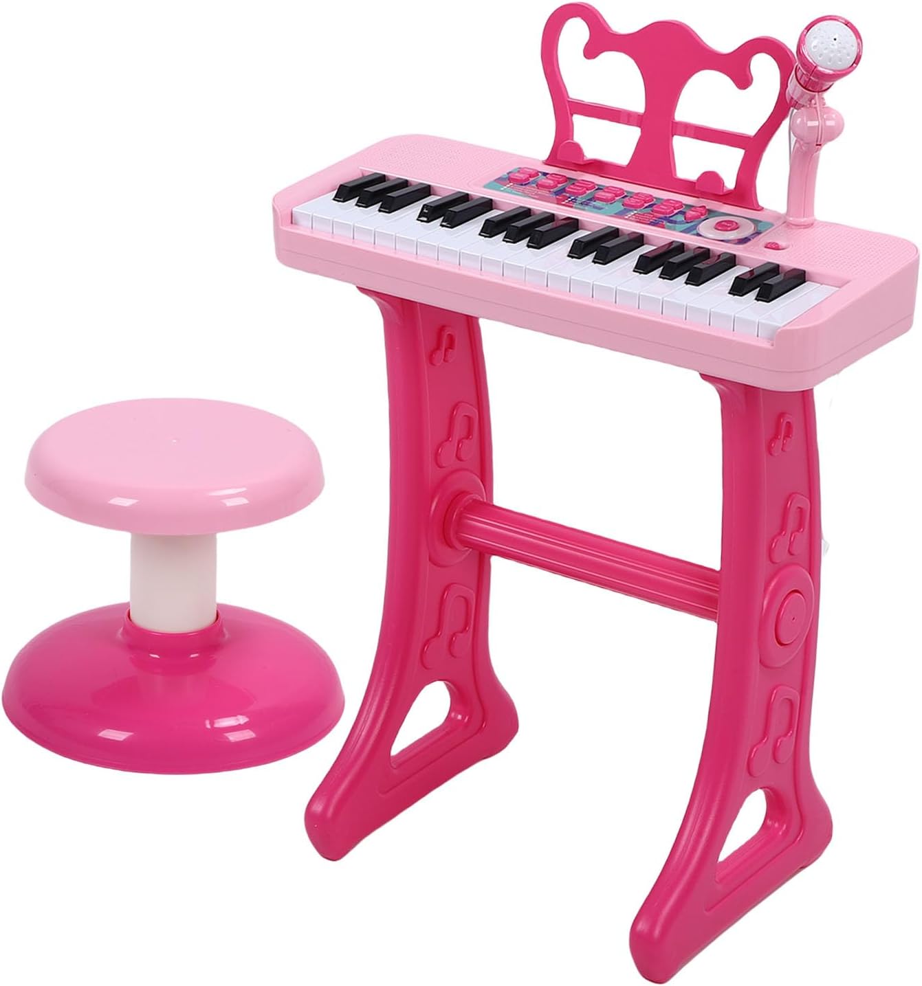 [DIVERTIMENTO MUSICALE COMPLETO] Questa tastiera per per bambini a 37 tasti presenta 22 brani demo, 4 ritmi e 4 toni di strumenti. Include funzioni di registrazione e riproduzione, un vero microfono e sgabello robusto per un intrattenimento senza fine. [QUALITÀ DEL SUONO PREMIUM] I doppi altoparlanti stereo offrono un audio ricco e chiaro superiore ai pianoforti giocattolo con altoparlante singolo. La velocità di riproduzione regolabile e i controlli del volume migliorano l'esperienza musicale. [SVILUPPO EDUCATIVO] Progettato per coltivare l'apprezzamento precoce della musica e lo sviluppo cognitivo nei bambini dai 3 anni in su. Migliora la coordinazione delle , stimola lo sviluppo del cervello e migliora l'immaginazione. [CONNETTIVITÀ AUDIO] Viene fornito con un cavo di ingresso audio per il collegamento di smartphone, tablet o lettori mp3. I bambini possono suonare con le loro canzoni preferite o godersi spettacoli in stile karaoke con il microfono. [SCELTA ECCEZIONALE] Ideale per compleanni, Natale o Festa dei bambini. La struttura robusta, gli accessori completi e le caratteristiche professionali lo rendono un'opzione di intrattenimento educativa e .