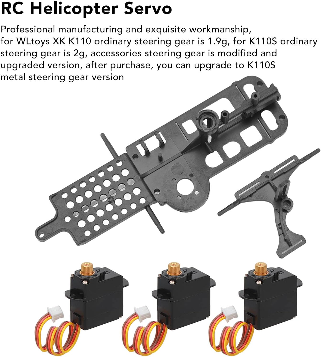 [Prestazioni migliorate] - Questo kit include accessori modificati e aggiornati, che consentono di passare alla versione dello sterzo in metallo k110 per migliorare le prestazioni generali. [Kit tutto compreso] - Il pacchetto comprende scatola dello sterzo, braccio dello sterzo, viti, cuscino in spugna, piastra di pressatura dello sterzo e supporto dello sterzo facile installazione. [Materiali Premium] - Il servo 'elicottero RC è realizzato in plastica, mentre il materiale dello sterzo è in acciaio, garantendo resistenza e una lunga durata. [Compatibilità] - Adatto per aerei rc xk k110 e k110s, questo set di servo si adatta perfettamente al tuo elicottero telecomandato. [Prestazioni migliorate] - Migliora le prestazioni generali del tuo elicottero telecomandato con questo eccellente kit di accessori per un'esperienza di volo più