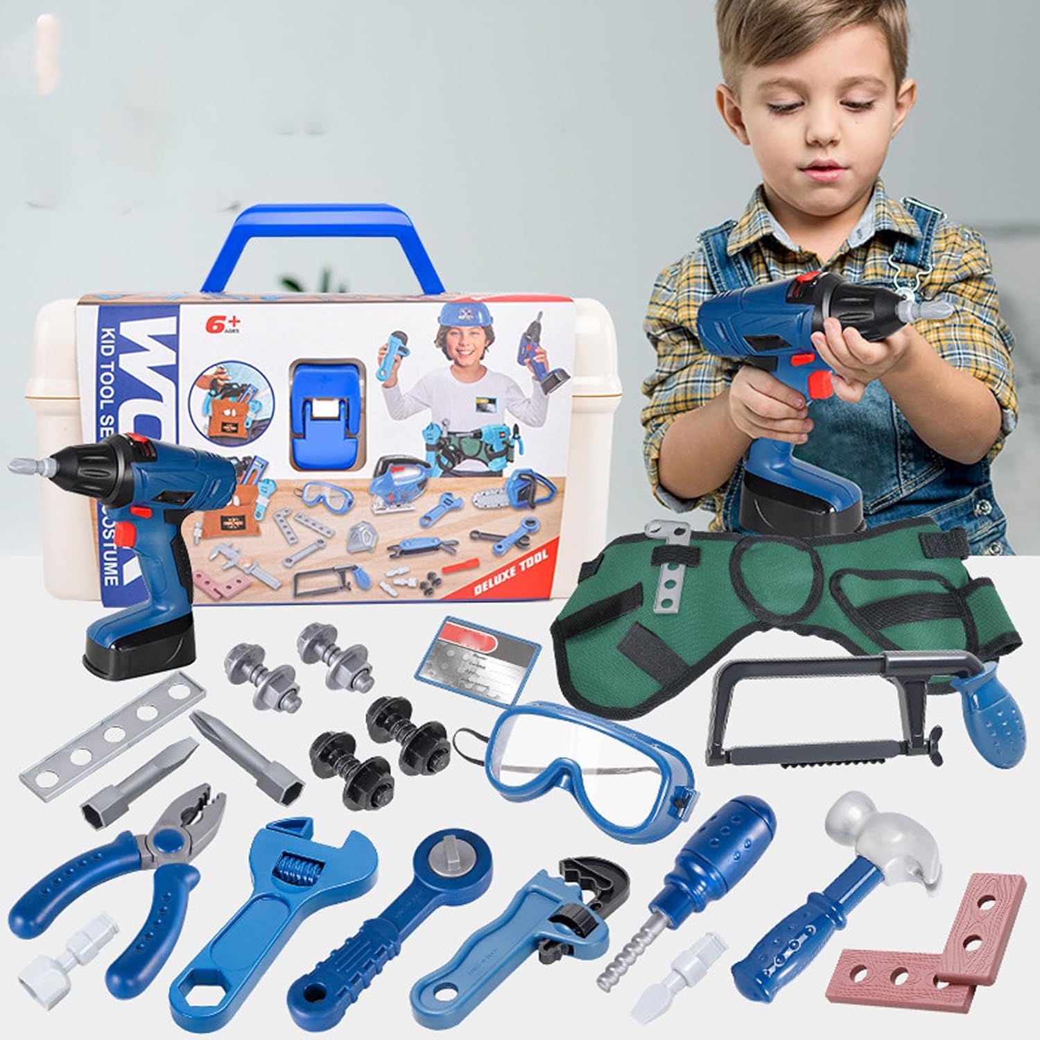 [Incoraggia il gioco fantasioso] Il coinvolgimento del design sparca l'eccitazione e promuove momenti di legame familiare di qualità. [Stimola la creatività] migliora le abilità stimolando l'immaginazione e la creatività nei bambini piccoli. [Garantire la sicurezza] Strumenti elettrici sicuri per il gioco senza preoccupazioni senza danni alla pelle delicata. [Ideale per il gioco di ruolo] consente ai bambini di imitare scenari reali e di sperimentare la gioia di essere un riparatore. [Introduce concetti di riparazione] Set di strumenti educativi introduce concetti di riparazione di base attraverso attività di apprendimento interattive e divertenti.