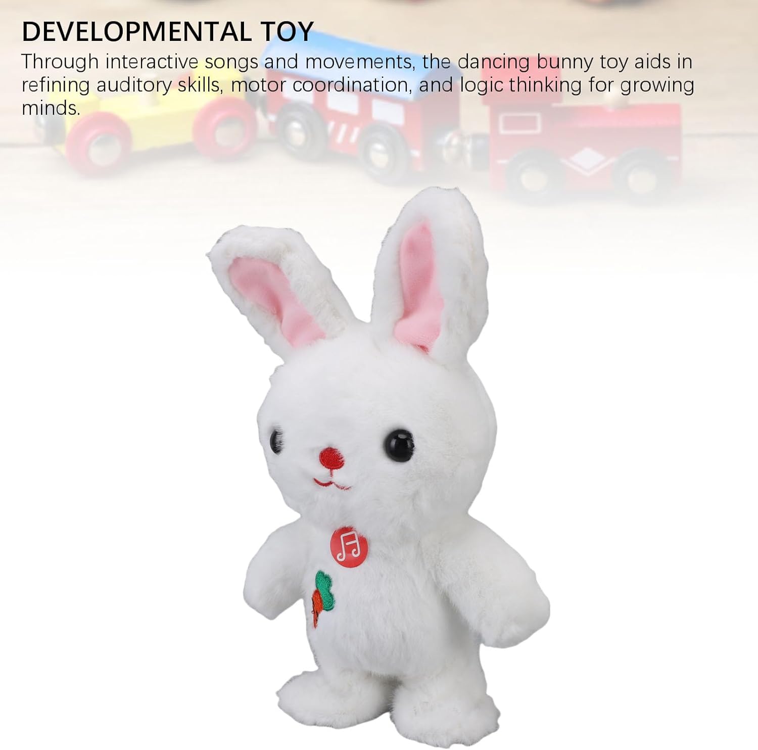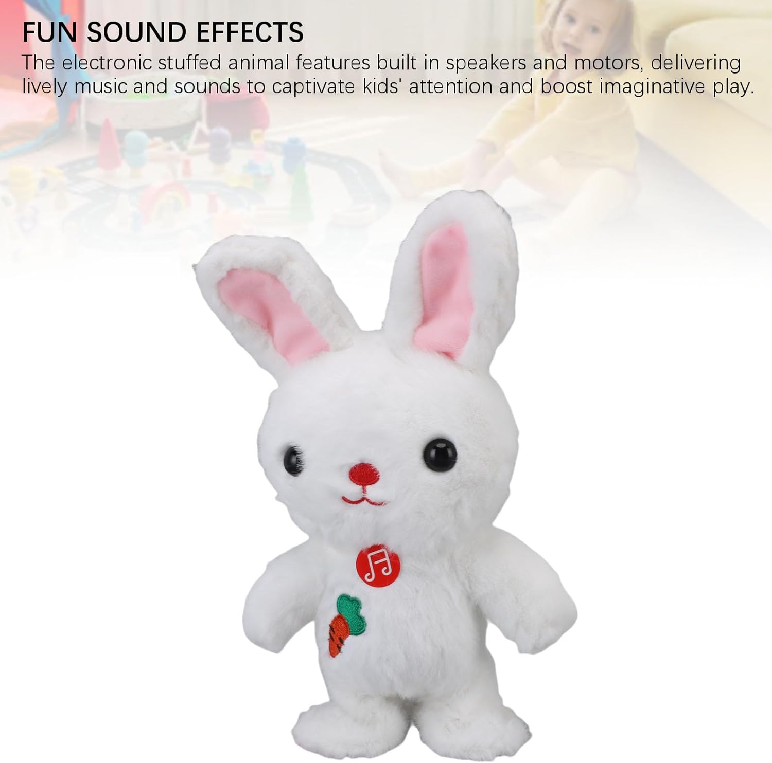 ? [Effetti sonori + Motor Play]: goditi le filastrocche croccanti con il nostro altoparlante incorporato, mentre il motore silenzioso garantisce mosse di danza durante il gioco. [Supporto per le competenze sensoriali]: incoraggiare il monitoraggio uditivo e l'apprendimento causa-effetto per i bambini di età pari o superiore a 6 mesi con movimenti ritmici e risposte vocali. [Design pronto per i viaggi]: con una batteria ricaricabile della durata di 2 ore per carica, il nostro coniglietto leggero è per le date di gioco in movimento al parco o all'aeroporto. [Dancing and Singing Interaction]: guarda mentre il nostro coniglietto motorizzato cammina e bob a 5+ canzoni, con le mosse a led sincronizzate che scatenano la curiosità del tuo bambino.