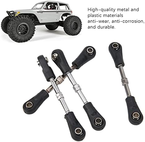 Regolazione precisa: regolazione della lunghezza da 61 mm a 71 mm (da 2,4 a 2,8 pollici) per un angolo di sterzata coordinato e una stabilità ottimale. Robusto mix di materiali: realizzato in metallo durevole e plastica resistente per elevata resilienza e resistenza all'usura. Ampia compatibilità: ideale per la maggior parte dei modelli di veicoli fuoristrada e cingolati RC in scala 1/10 come parte di ricambio su misura. Facile da montare: Per un facile smontaggio del vecchio tirante e l'installazione del nuovo tirante senza attrezzi speciali. Set completo: contiene tutti i componenti necessari per una sostituzione immediata e completa.
