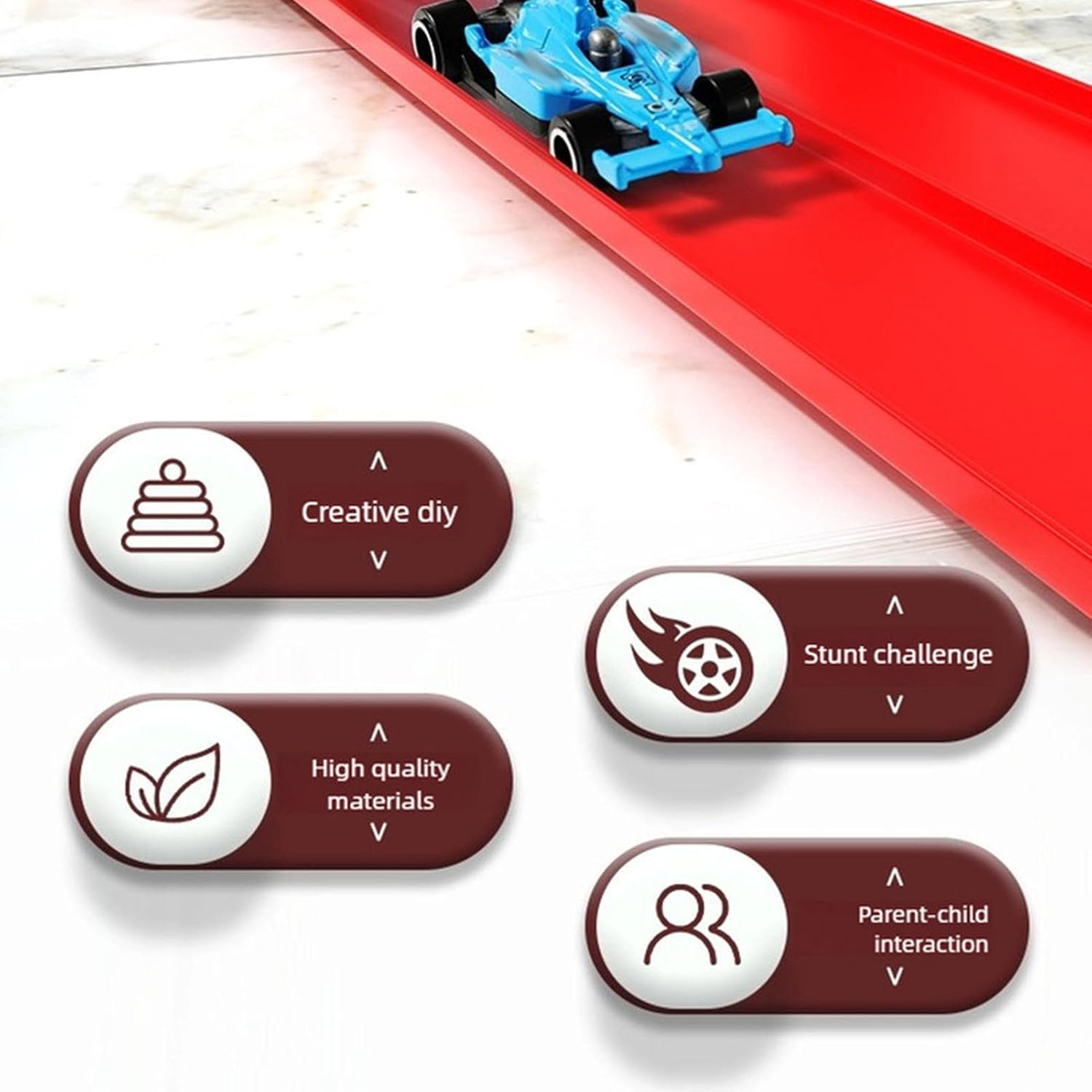 NO-BPA Safe Plastic: set di piste di plastica no-BPA rigorosamente testata! Durevole per il gioco del bambino ruvido e sicuro: mette i migliori standard di sicurezza. I genitori riposano facilmente, i bambini giocano liberamente, ideali per le famiglie che danno la priorità ai giocattoli sicuri Combotti con 16 accessori: 16 accessori inclusi + traccia flessibile = configurazioni infinite! I bambini si ricostruiranno in nuove scene di gara ogni volta: da semplici percorsi verso labirinti complessi. Nessuna noia, solo divertimento senza sosta per il gioco da solo o di gruppo inerziale a prova di deragliamento: un forte inerziale rende le auto giocattolo al 100% a prova di deraglia! Si sfidano velocemente lungo la pista senza fermate, aumentando l'eccitazione da corsa. Non più frustranti pause "fix-it", ideale per i bambini che amano l'azione non-stop Design di gioco aperto: questa pista per auto flessibile sparca l'immaginazione per bambini con gioco aperto: nessuna regole fisse! Costruiscono loop, rampe o labirinti liberamente, trasformando il tempo di gioco in divertimento per la costruzione di abilità. Molto più coinvolgente dei set di piste rigide, mantenendo i bambini 3-8 intrattenuti per ore Esperienza anti-gravità montata a parete: un unico design anti-gravità funziona su pavimenti e pareti! Montare la pista per le gare verticali, qualcosa che gli altri non possono fare. I bambini ottengono un tempo di gioco fresco e degno di Wow, mentre i genitori risparmiano spazio sul pavimento