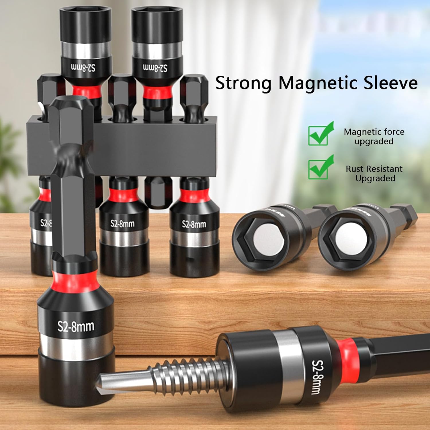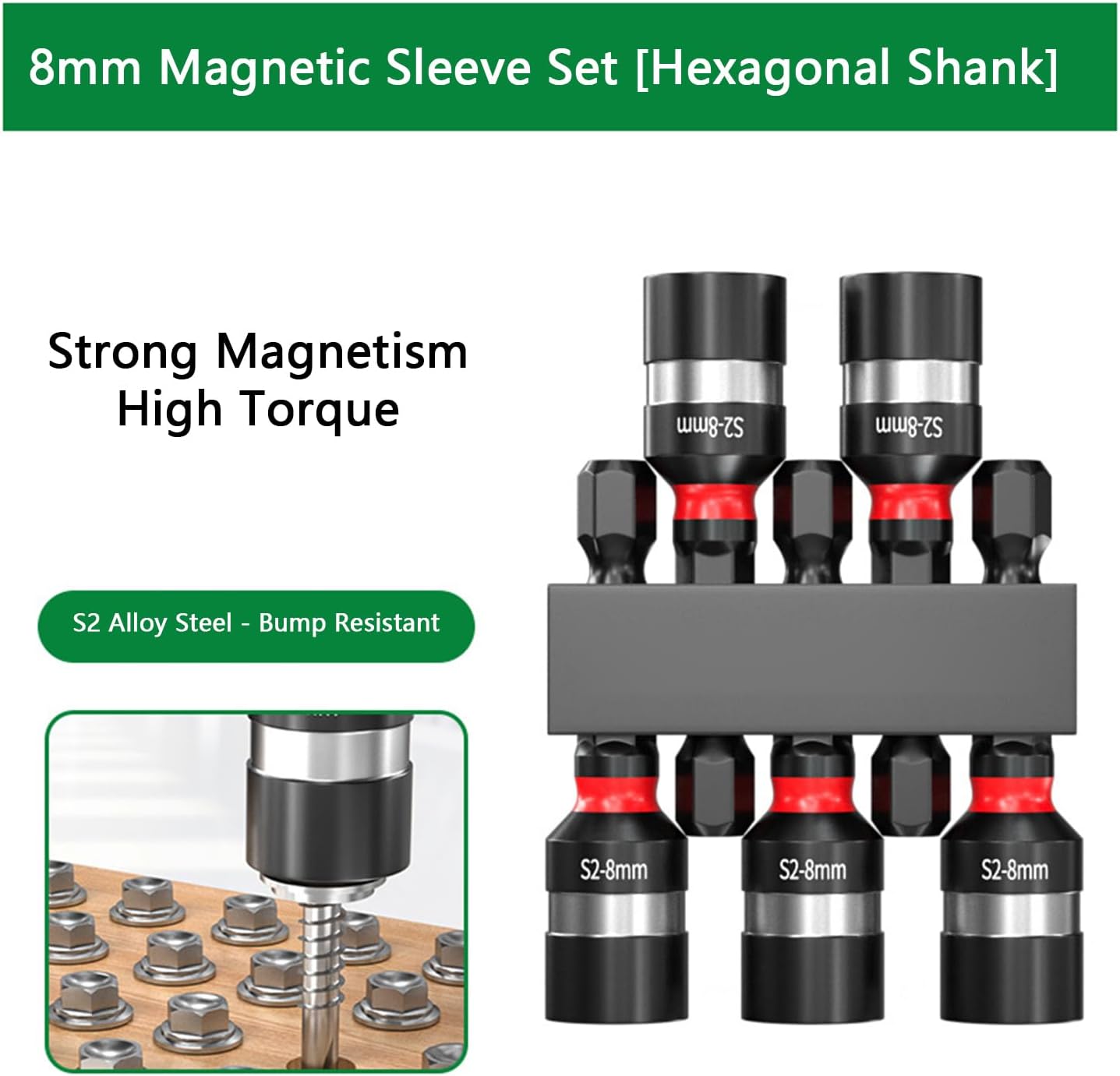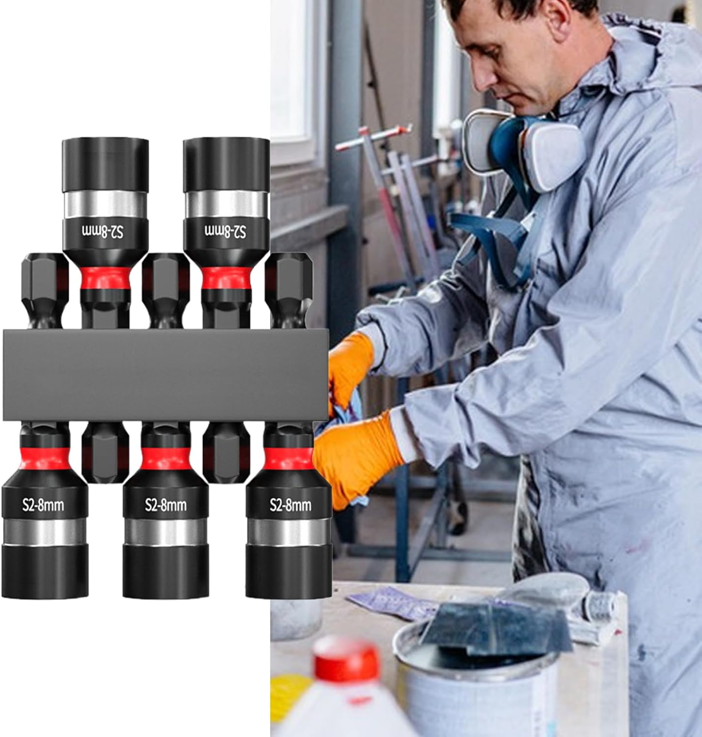 Quick Change Hex Design: This nut driver set features a exex quick-change system that allows for smooth and secure transitions between bit, making it ideal for power drills and drivers used in fast-paced mechanical assembly tasks Magnetic Socket Holders: Each driver is equipped with a strong magnetic socket that securely holds nuts and bolts in place during use, preventing slippage and reducing the risk of dropped fasteners in tight or elevated spaces Versatile Applicazione: compatibile con tutti gli standard power drills and drivers, this set is suitable for automotive repair, furniture assembly, appliance work, and projects requiring precise nut and bolt handling Durabled and Long-Lasting: Crafted from high-quality steel with a -resistant coating, these nut drivers are designed for long term durability, offering strength and performance in demanding mechanical environments Compact Organized Set: Includes 5 essential size for common tasks, stored in a compact and organized holder for easy access and transport keeping your tidy and most-used tools ready at all times