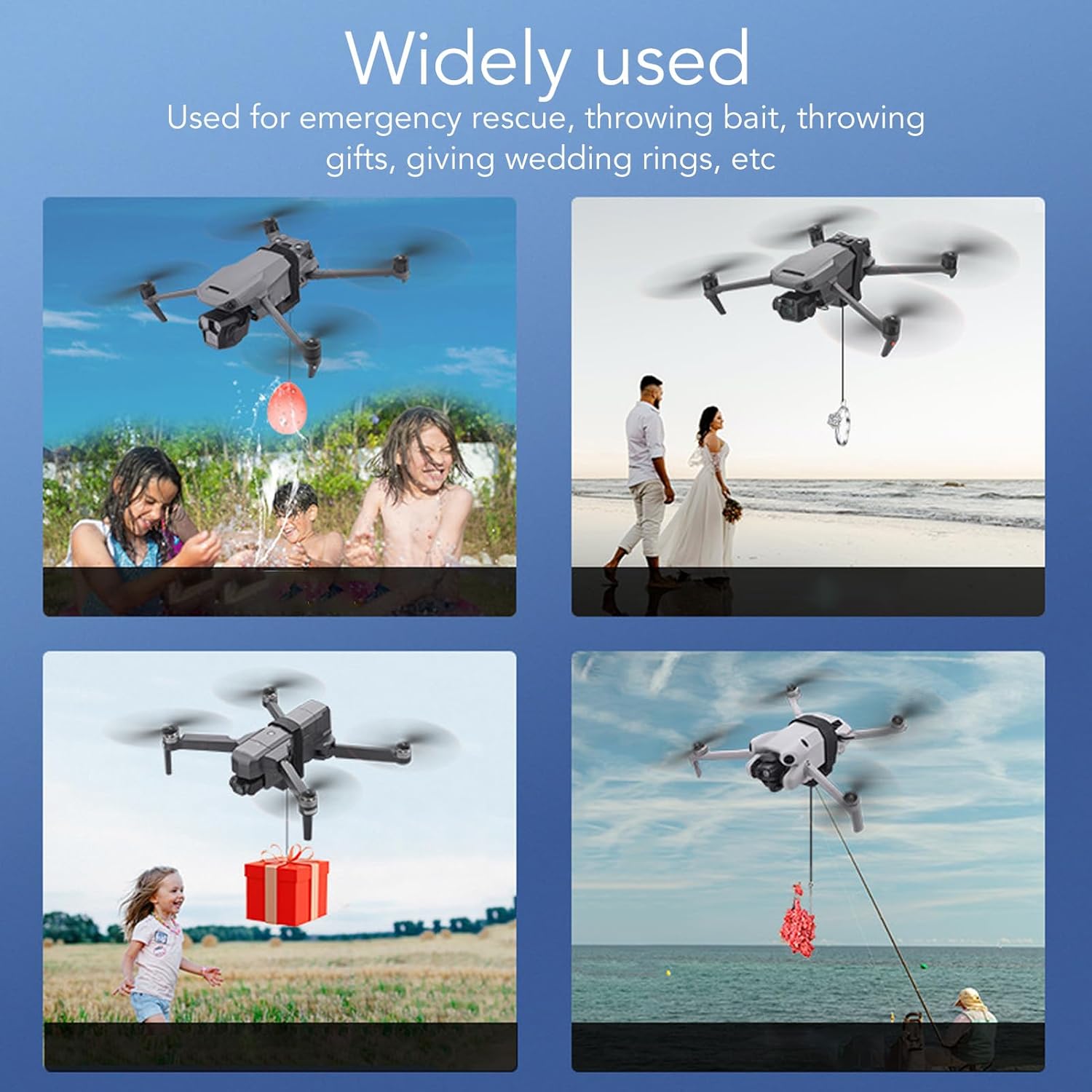 Modelli compatibili: il di rilascio del carico utile del drone è adatto per Mini 3 Pro, Mini 4 Pro, Mavic 3, Mavic 3 Pro, Air 3, F11 e la maggior parte degli altri modelli. Parametri importanti: il carico massimo del carico utile del drone è 1 kg, si prega di considerare il carico utile massimo del drone. Batteria integrata da 300 mAh, interfaccia di ricarica di tipo C. Rilascio rapido con 1 tasto di controllo dal controller. Portata remota di 500 metri: il drone airdropper RC può far cadere oggetti entro una distanza controllata di 500 m. Testato in aree aperte prive di interferenze, la portata remota effettiva può variare in base alle condizioni ambientali. Leggero e sicuro: il di consegna del drone è realizzato in materiale ABS, leggero, robusto e durevole. Non aumenta il carico sul drone né causa danni. Facile da installare e rimuovere. Ampiamente usato: puoi inviare fedi nuziali, regali, fiori ai tuoi amici, familiari e amanti in qualsiasi giorno indimenticabile come matrimoni, Halloween, Natale, San Può anche essere usato per lanciare esche in mare, lanciare coriandoli alle feste in spiaggia, lanciare palloncini, aggiungendo divertimento illimitato alla tua vita.