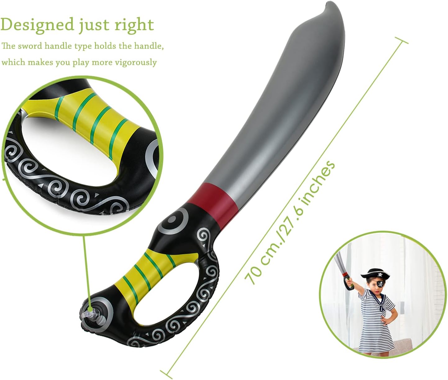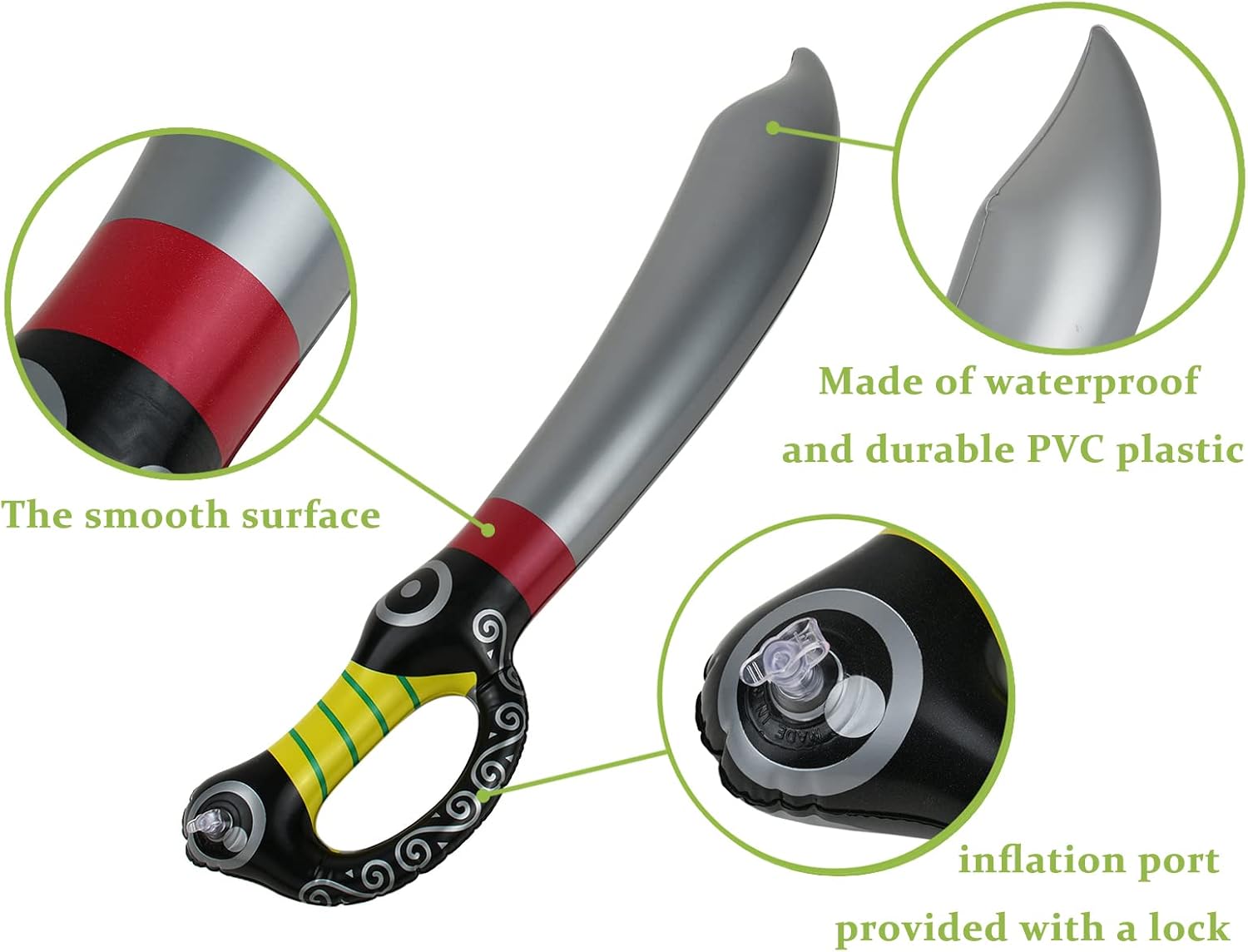 Spada da pirata giocattolo in morbido PVC – innocuo per bambini, ideale per giochi di ruolo, feste pirata o costumi di Halloween Design realistico con manico stampato per foto divertenti momenti di festa e decorazioni creative Valvola autosigillante: facile da gonfiare senza perdite d'aria. Può trattenere l'aria per almeno una settimana. Suggerimento: per svuotare il tuo palloncino, avrai bisogno di una lunga maglia smussata. Inseriscilo nell'apertura del collo del palloncino e l'aria verrà rilasciata Resistente e riutilizzabile: non si deforma dopo l'uso, ideale per attività indoor/outdoor, stile A, più piccolo, ideale per bambini piccoli; stile B, più grande, ideale per bambini grandi e adulti Contenuto della confezione: 6 spade gonfiabili