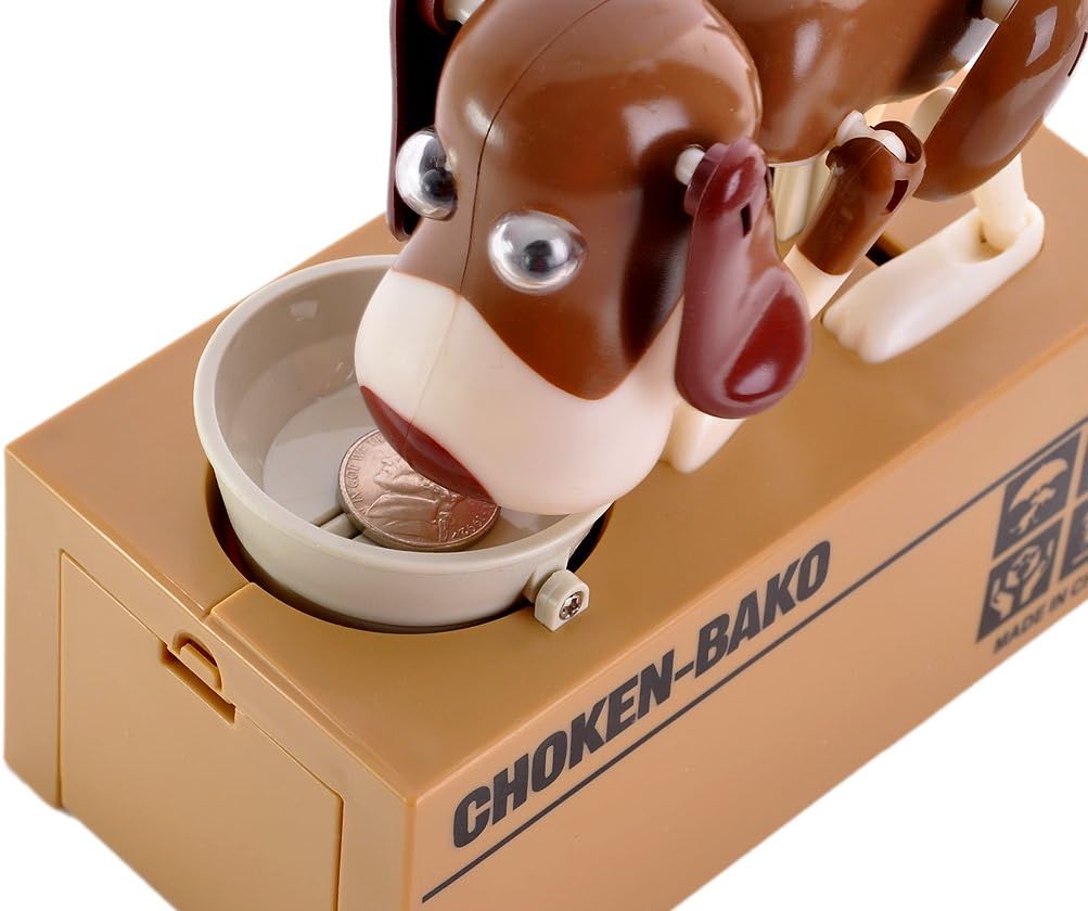 Un salvadanaio divertente per i bambini per risparmiare denaro (TUTTO QUALITÀ TESTATA) Aiuta i bambini a sviluppare una buona abitudine di risparmiare denaro Questo cane robot mangerà felicemente i tuoi soldi di riserva e risparmierà denaro per te Alimentato da 2 batterie AA (batterie NON incluse); Dimensioni (cm): 16 (L) x 8 (L) x 16 (A)