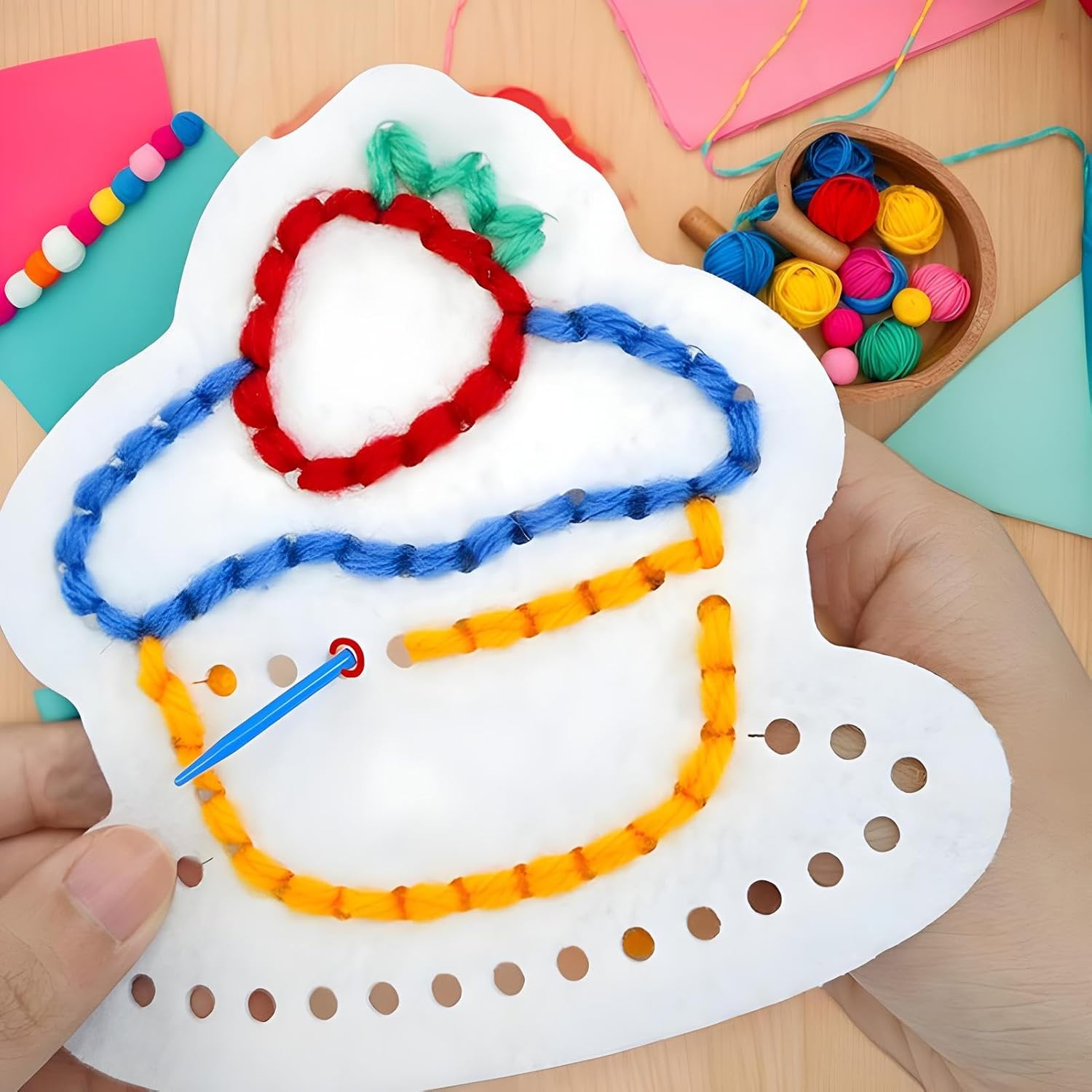 Miglioramento delle abilità creative: rinvigorire il tocco artistico con kit con una varietà di motivi non tessuti pre-taglio in colori vivaci. I bambini possono creare disegni speciali come animali e piante intrecciando diverse tonalità di lana Conveniente da usare: con modelli non tessuti pre-picchettati e un design ad ago arrotondato che evita lesioni accidentali, questo set di giocattoli di allacciatura include tutti gli strumenti indispensabili: filati di lana color e aghi sicuri, garantendo un'esperienza di realizzazione sicura per i bambini Afferrazioni sottili abilità motorie: ispira i bambini a pensare fuori dagli schemi mentre schemi di allacciatura speciali, promuovendo la creatività e il pensiero fantasioso attraverso l'esplorazione pratica e la sperimentazione del design Aumenta la connessione parentale: promuove il genitore-figlio attraverso attività di creazione, incoraggiando i genitori a guidare i bambini mentre insegnano le capacità di abbinamento del cucito e di abbinamento del colore Presente meraviglioso: Fit presente per compleanni o vacanze, questo giocattolo aumenta la fiducia in se stessi e il senso di realizzazione di un bambino, mentre la sua squisita imballaggio affascina l'attenzione