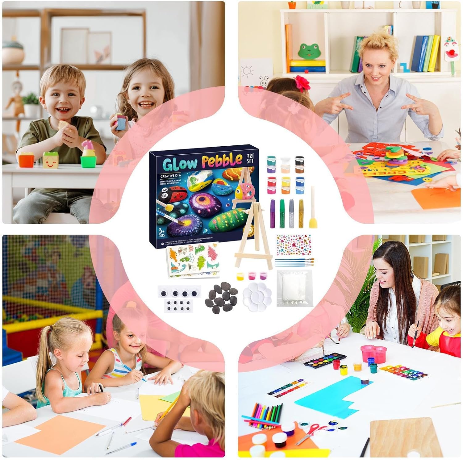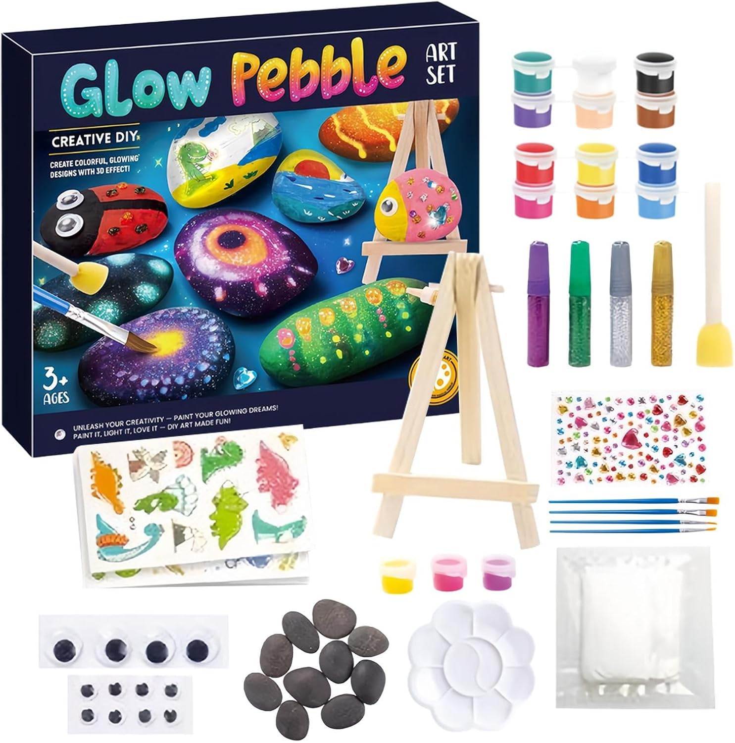 Essenziali per pittura creativa: Include pennelli e rocce per tecniche di doodling, gradienti e stratificazione, consentendo ai bambini di realizzare facilmente dipinti luminosi su rocce con materiali pronti all'uso fin dall'inizio Sviluppo Creativo: Questo kit di pittura su rocce permette ai bambini di migliorare la concentrazione e il senso estetico, affinando le capacità di coordinazione dei colori e la consapevolezza spaziale, supportando idealmente la crescita artistica attraverso il coinvolgimento con progetti creativi tridimensionali su rocce Designo Ergonomico e Sicuro per Bambini: Condividi momenti artistici di qualità con colori facili da stendere e dalla texture morbida, pensati per bambini dai sei anni in su, garantendo un divertimento creativo indipendente, mentre i manici arrotondati dei pennelli offrono un'impugnatura confortevole per giovani artisti che esplorano la propria creatività in totale sicurezza e comodità al Buio Automaticamente: Questo kit per dipingere sassi al buio senza sforzo, grazie ai pigmenti fluorescenti integrati che cieli notturni vivaci e display artistici di luce e ombra con effetto luminoso immediato e affascinante per giochi creativi notturni Protezione Colori Vivaci: Forma scudo impermeabile che previene la perdita di colore a contatto con acqua o pioggia, mantenendo la ntezza dei disegni su roccia fatti a mano e preservando il loro fascino originale grazie a una barriera idrofoba efficace e duratura